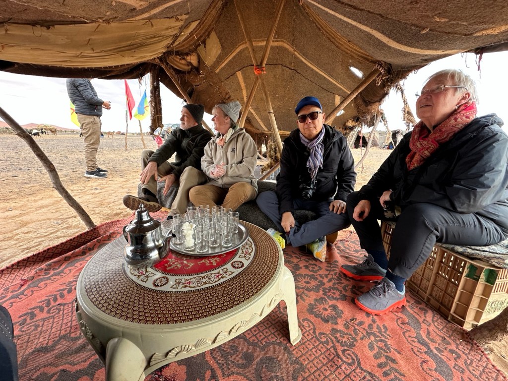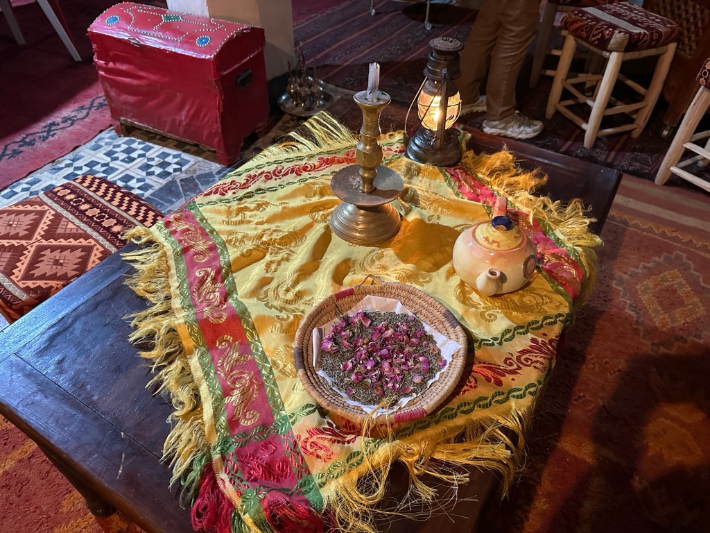 We then stop at a nomadic community of Amazigh (Berber) along the border of Algeria. Since the French occupation in the area there is a point of contention between the surrounding countries. There are also many in these communities that were forced to work in nearby mines during a prior occupation. We meet some locals and visit an abandoned mine. We are served tea and learn about daily life in the community from a young mother.