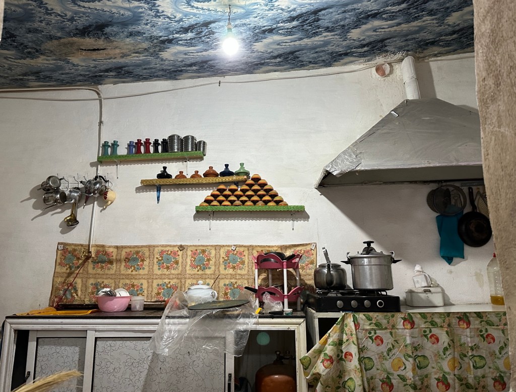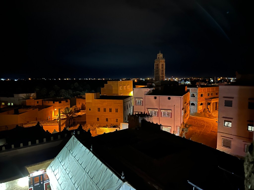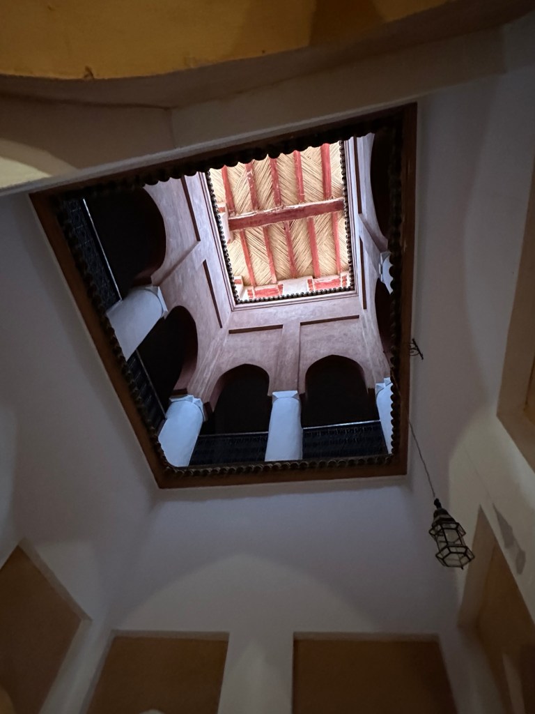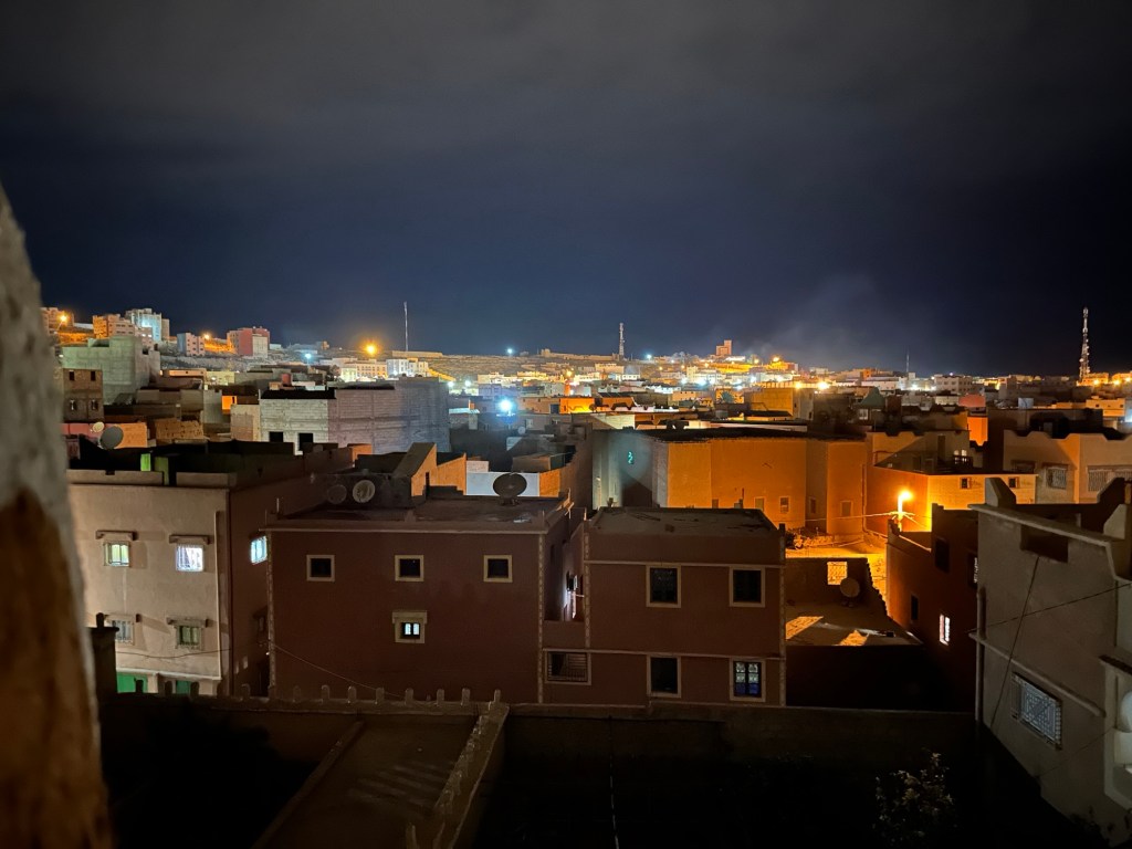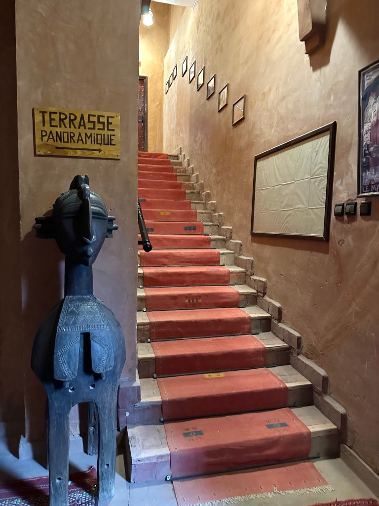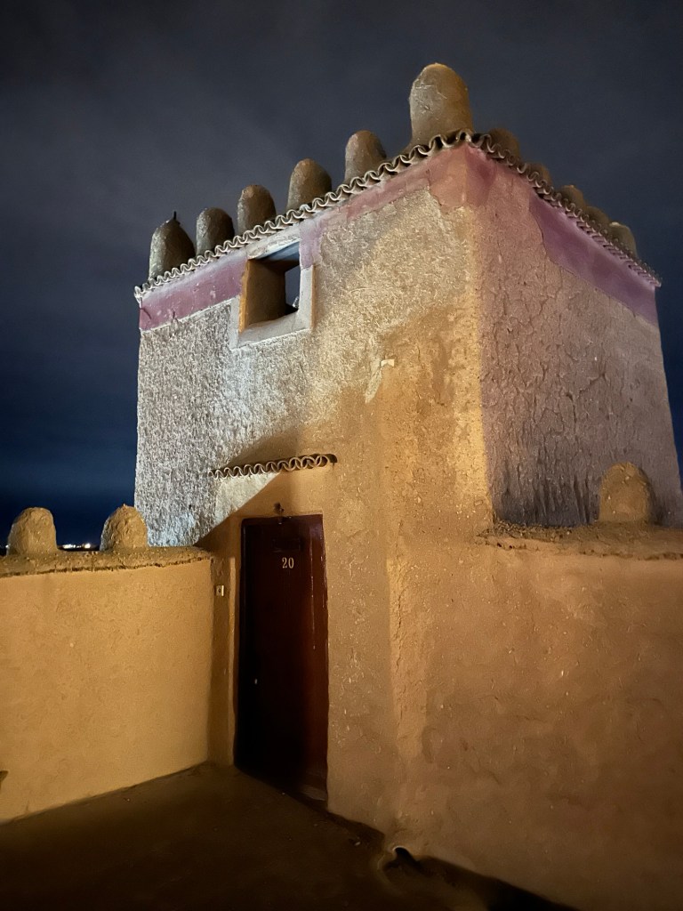 We are staying at a kabash style hotel tonight. A large extended family used to live in a large building like this. After dinner we do a quick exploration of the top floors and get a look over the city.