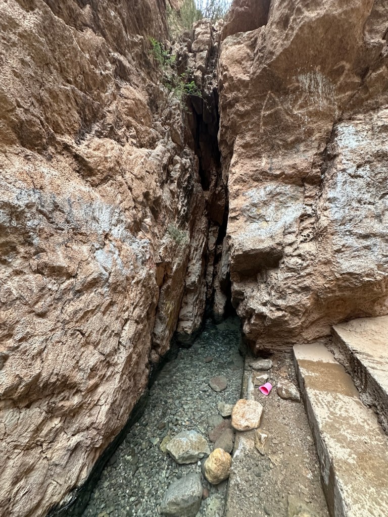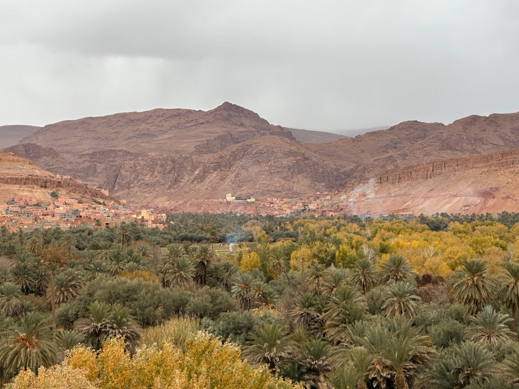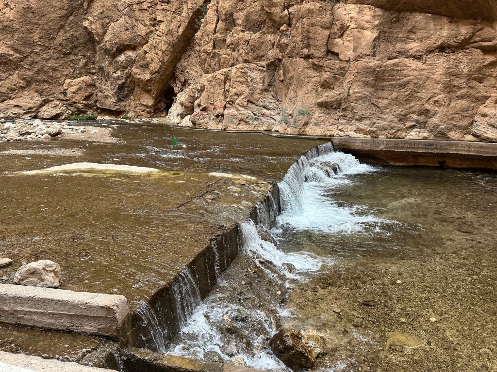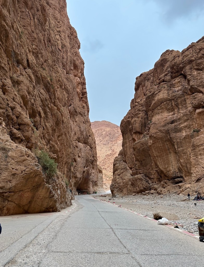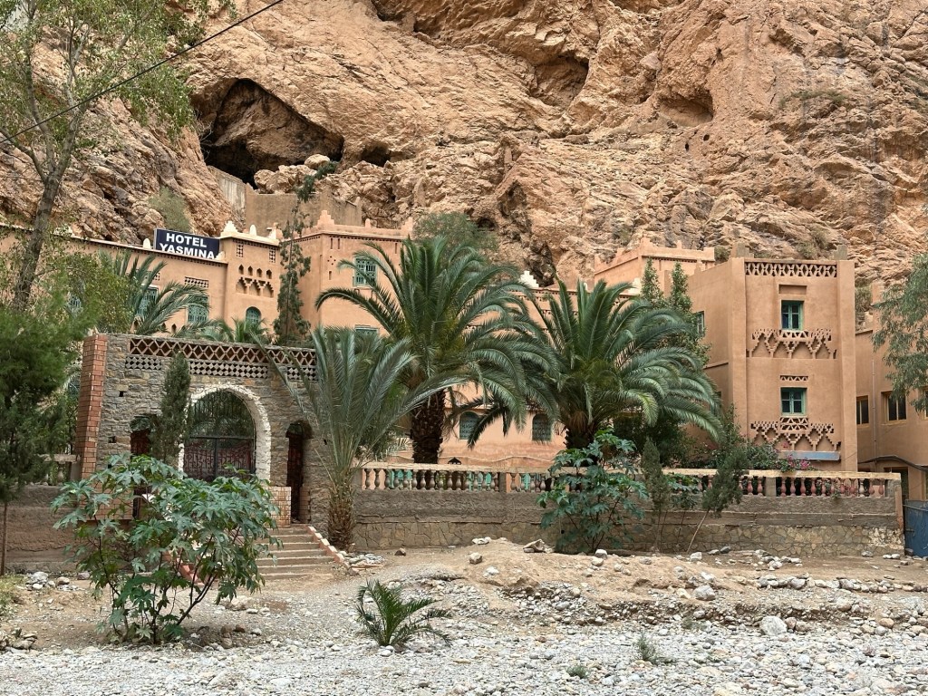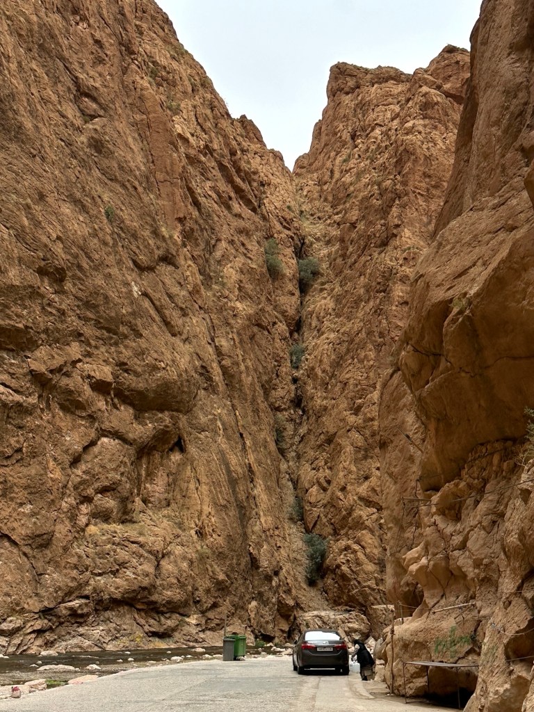 Originally we are supposed to travel to see Dades Gorge tomorrow but there is rain coming that is supposed to cause large floods in the area. Instead we schedule to see another gorge today so we don’t get trapped in the region (in fact another group after us does get trapped and we see footage of devastating flooding). For now we visit Todgha gorge instead.