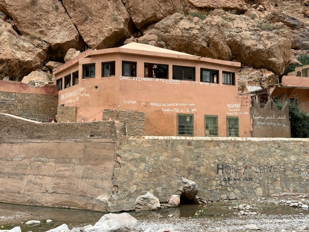 We walk along the gorge and see a hotel that had to be abandoned due to flooding.
