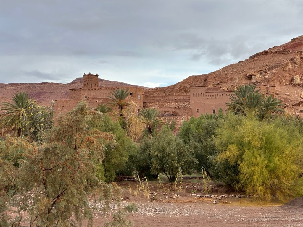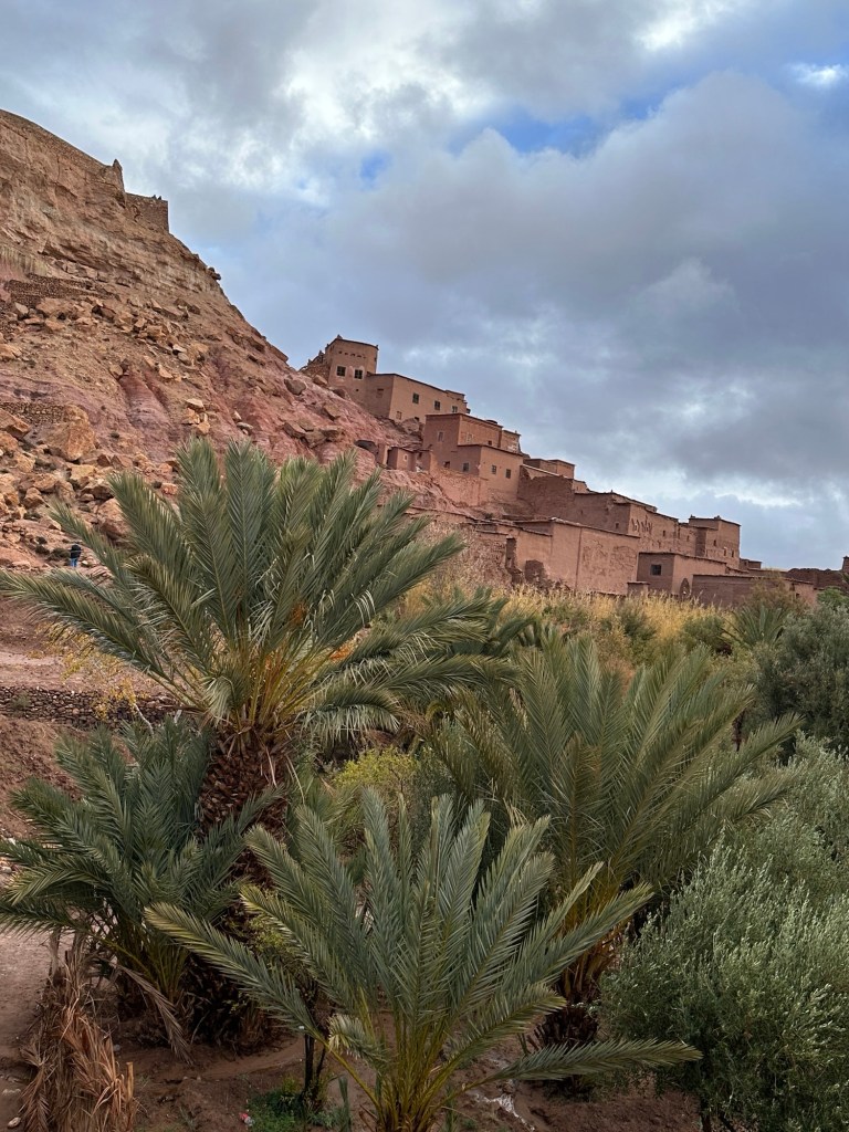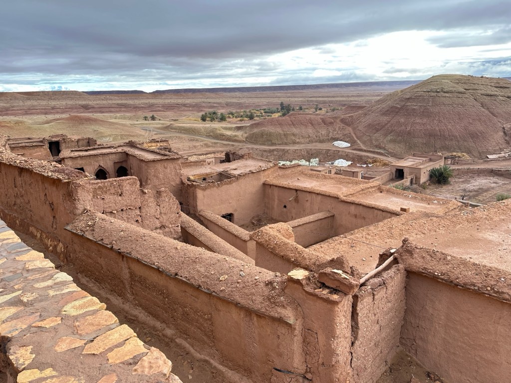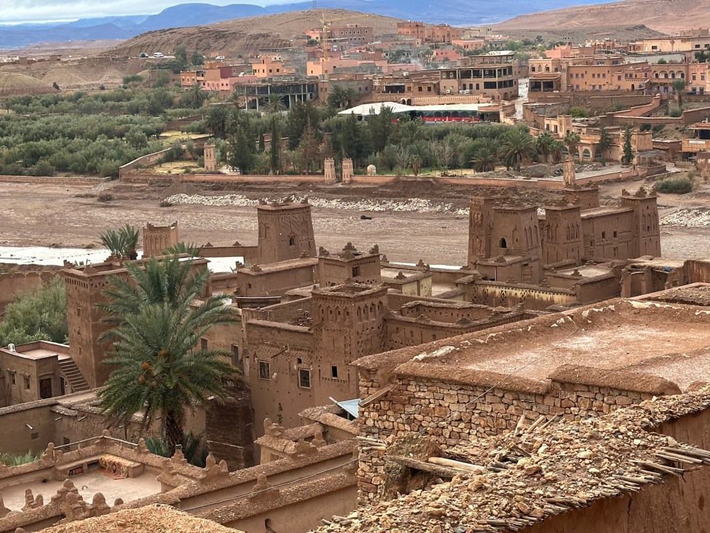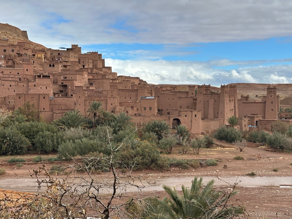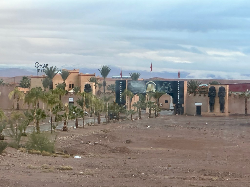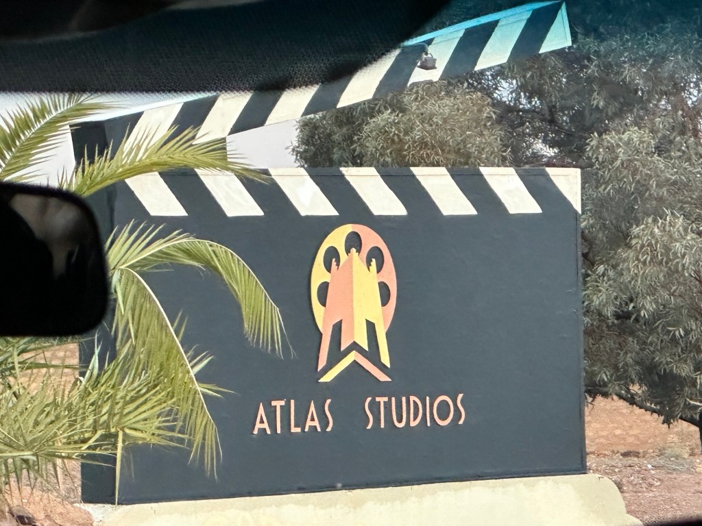 The next morning we drive by a movie studio and tour the ancient village of Ait Ben Haddou. In the past many movies have been filmed in this area because of the ancient village atmosphere. However in the last ten years filming reduced because modern technology such as AI has replaced realistic looking sets. The good news is that recently movies are being filmed in the area again including one coming up with Matt Damon.