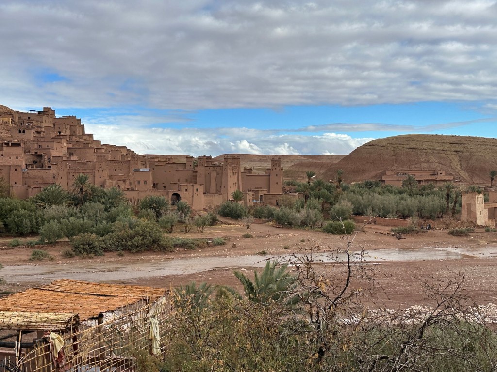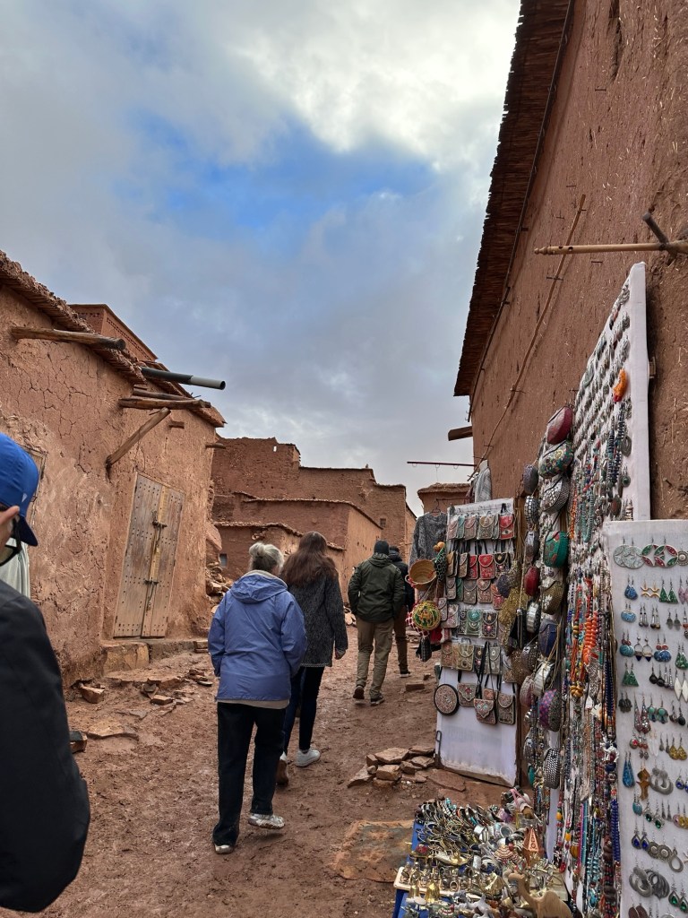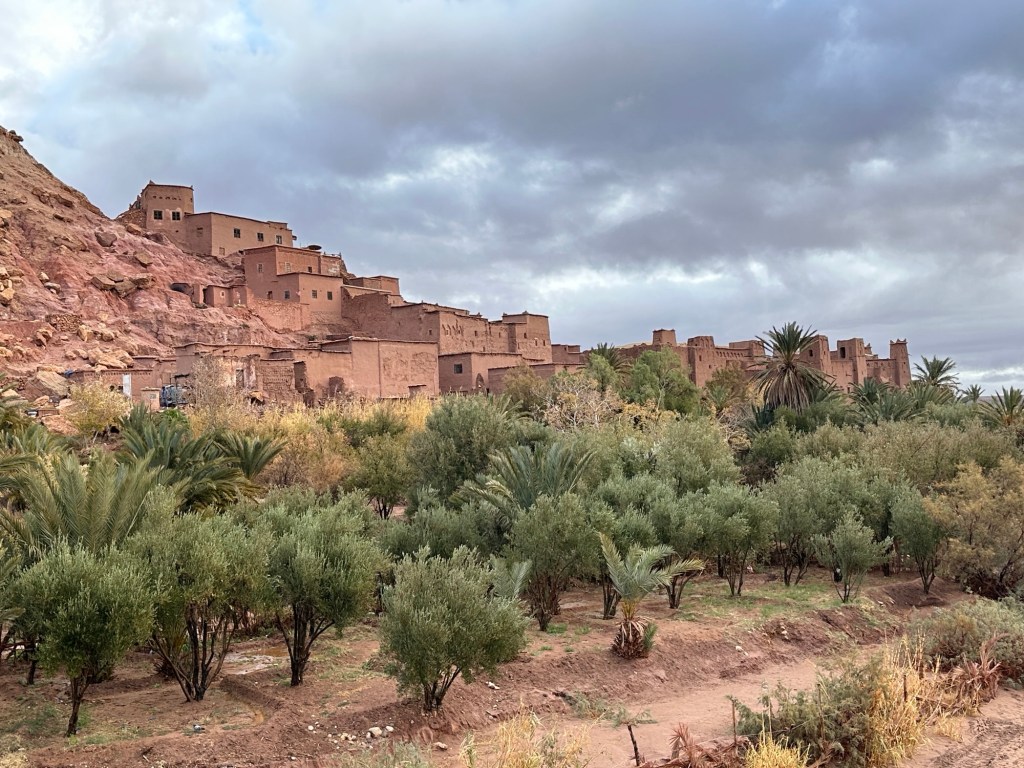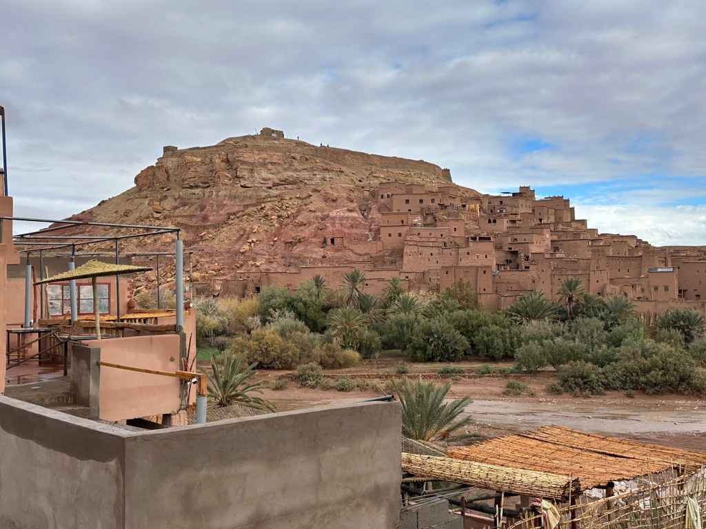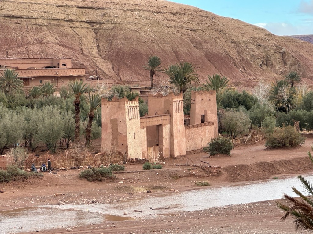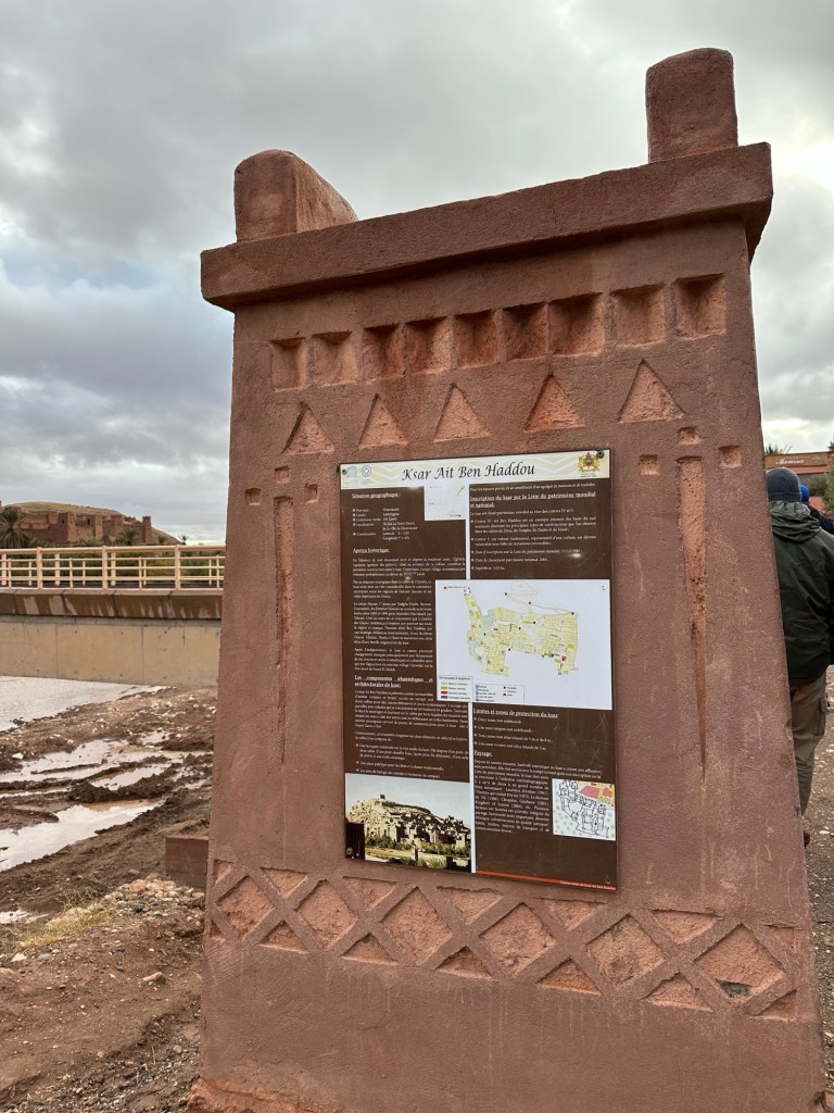 The next morning we drive by a movie studio and tour the ancient village of Ait Ben Haddou. In the past many movies have been filmed in this area because of the ancient village atmosphere. However in the last ten years filming reduced because modern technology such as AI has replaced realistic looking sets. The good news is that recently movies are being filmed in the area again including one coming up with Matt Damon.
