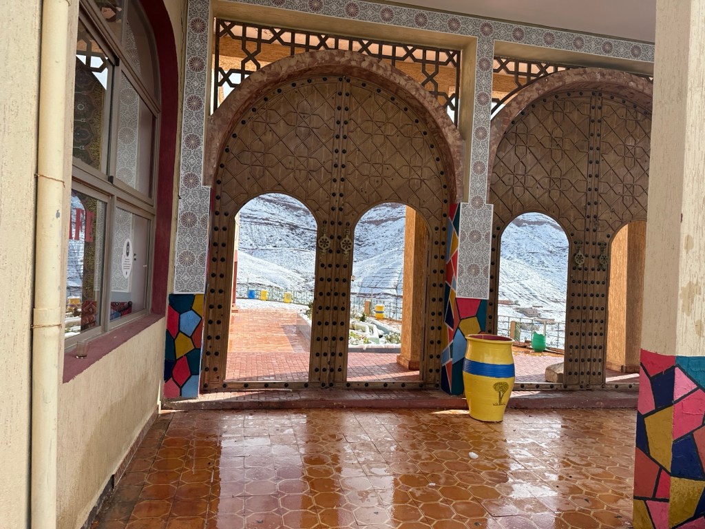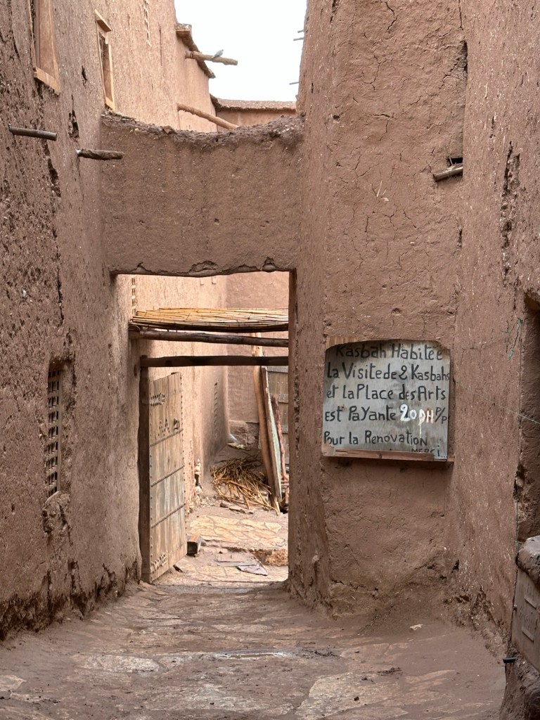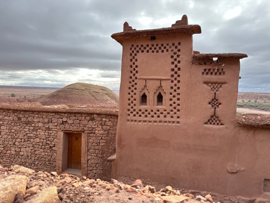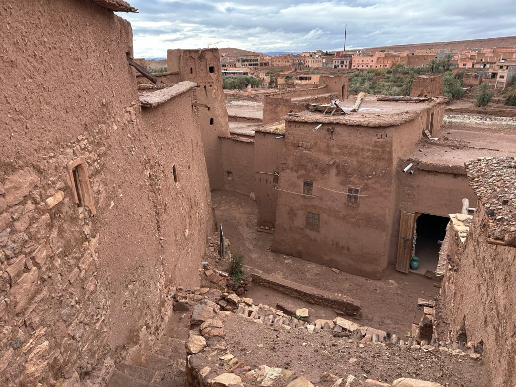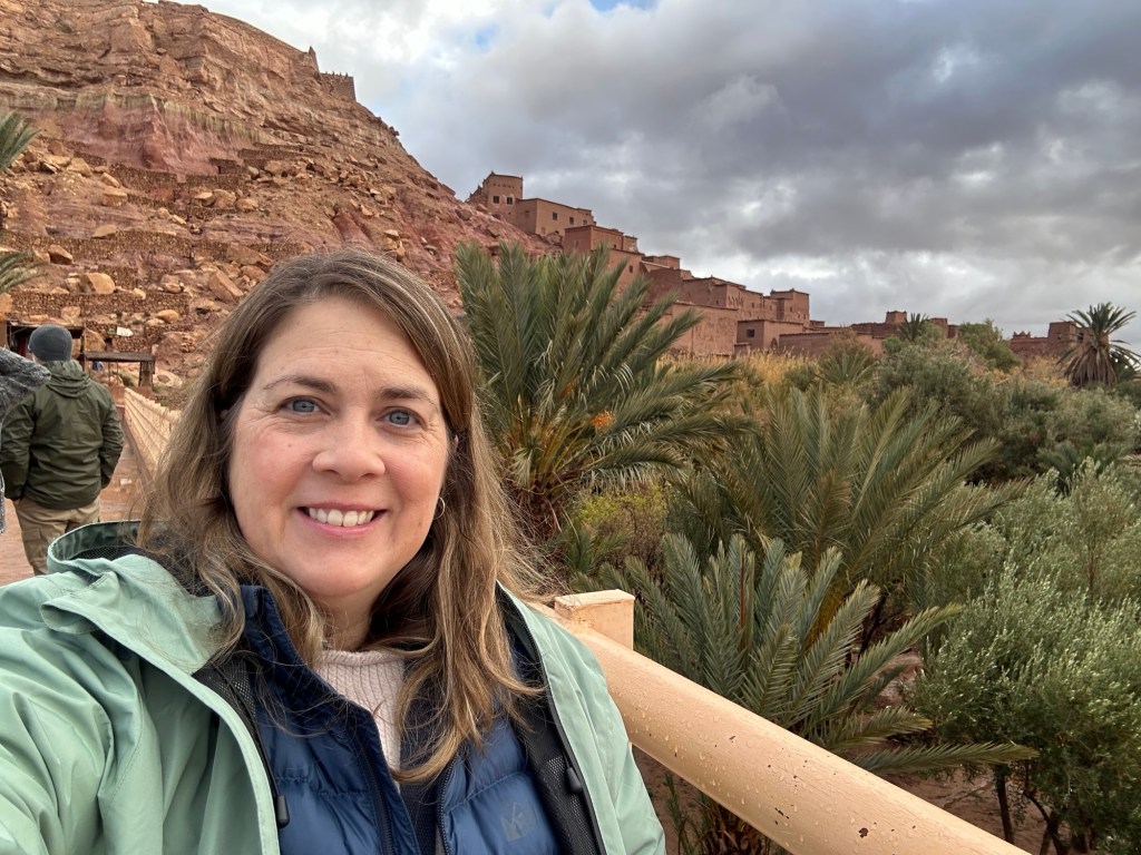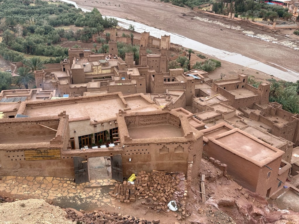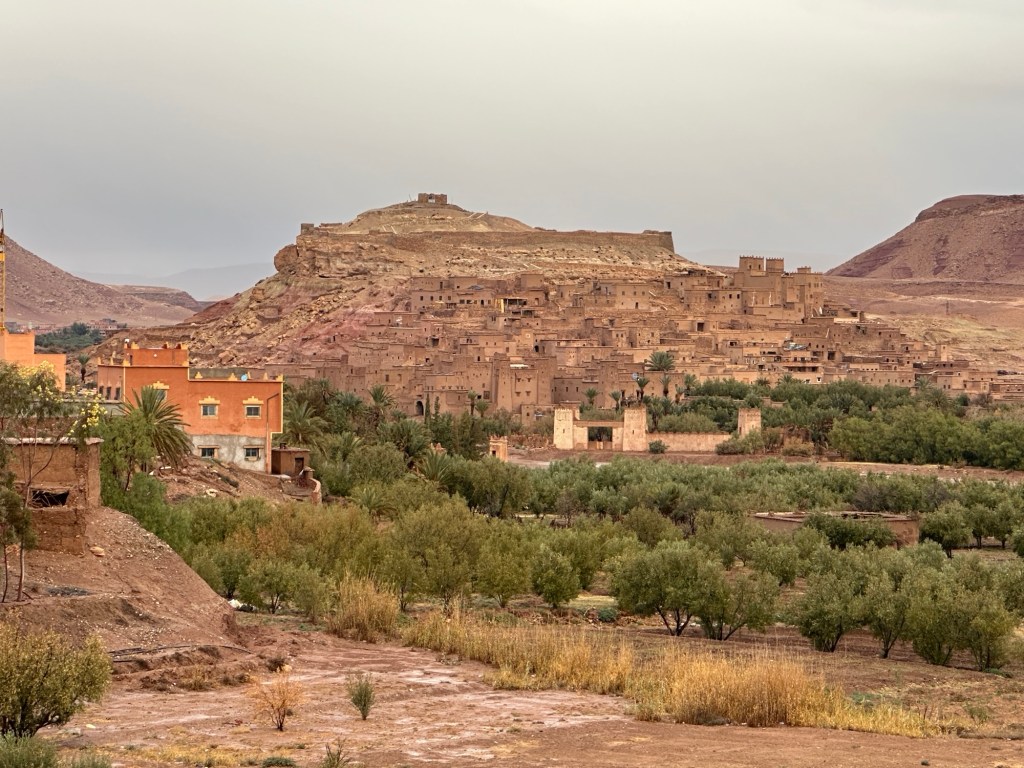 The next morning we drive by a movie studio and tour the ancient village of Ait Ben Haddou. In the past many movies have been filmed in this area because of the ancient village atmosphere. However in the last ten years filming reduced because modern technology such as AI has replaced realistic looking sets. The good news is that recently movies are being filmed in the area again including one coming up with Matt Damon.