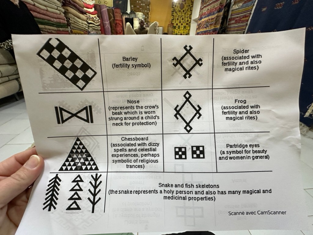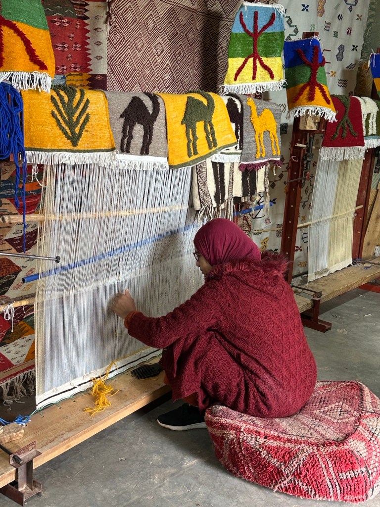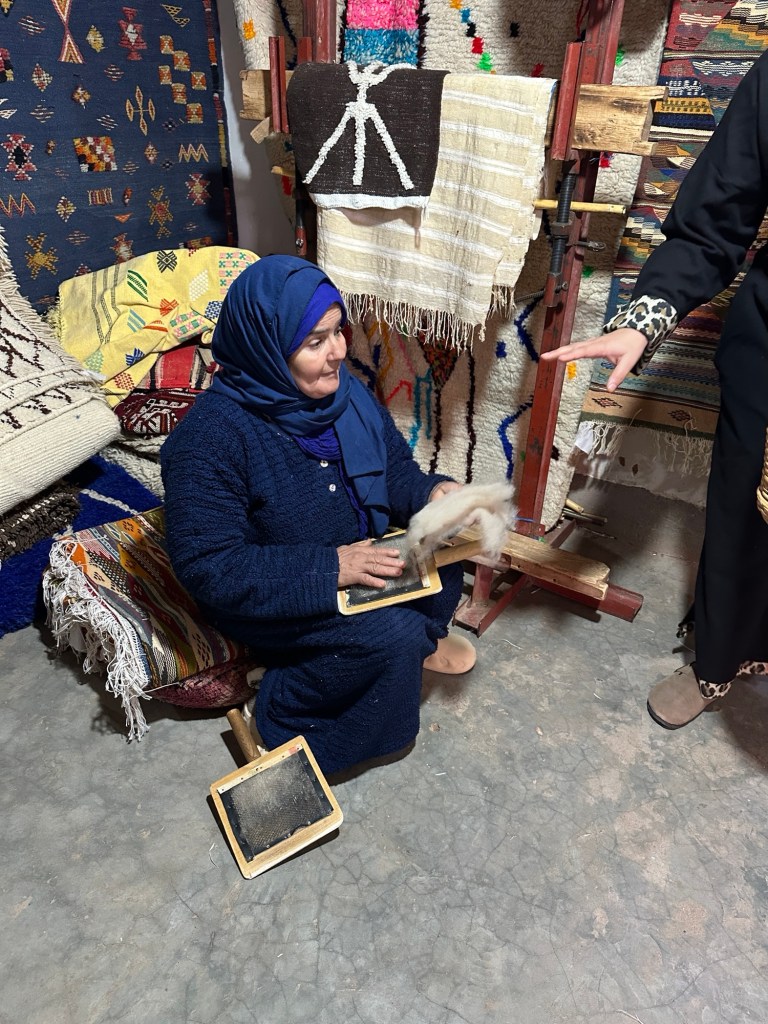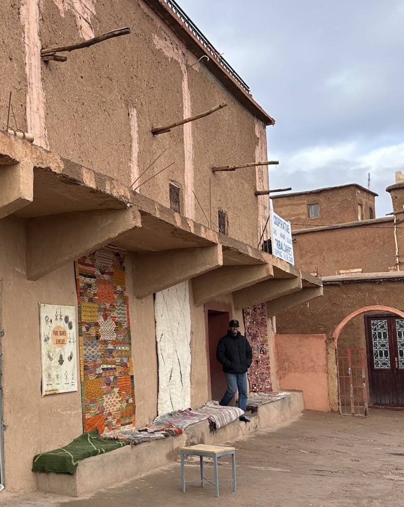 Before we leave we stop at a women’s cooperative to learn how moroccan women make and sell rugs for the area. We learn the different types of rugs that are made and the symbolic meaning of images weaved into the rugs. In the past I have so much anxiety with carpet sellers that I walk away flustered without purchasing a desired carpet from my travels, but these women make me feel right at home and I even purchase my first carpet ever while traveling. I am still deciding where to place my lovely carpet back home.