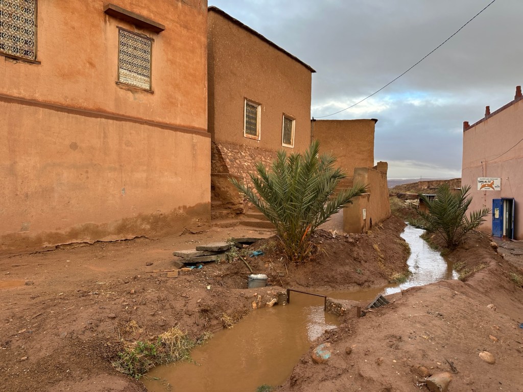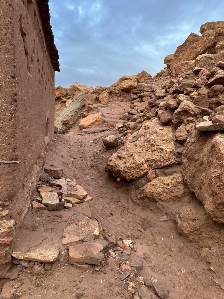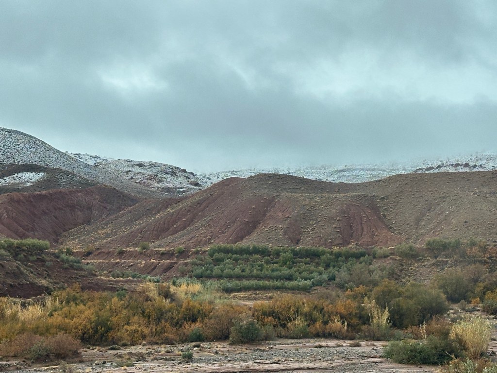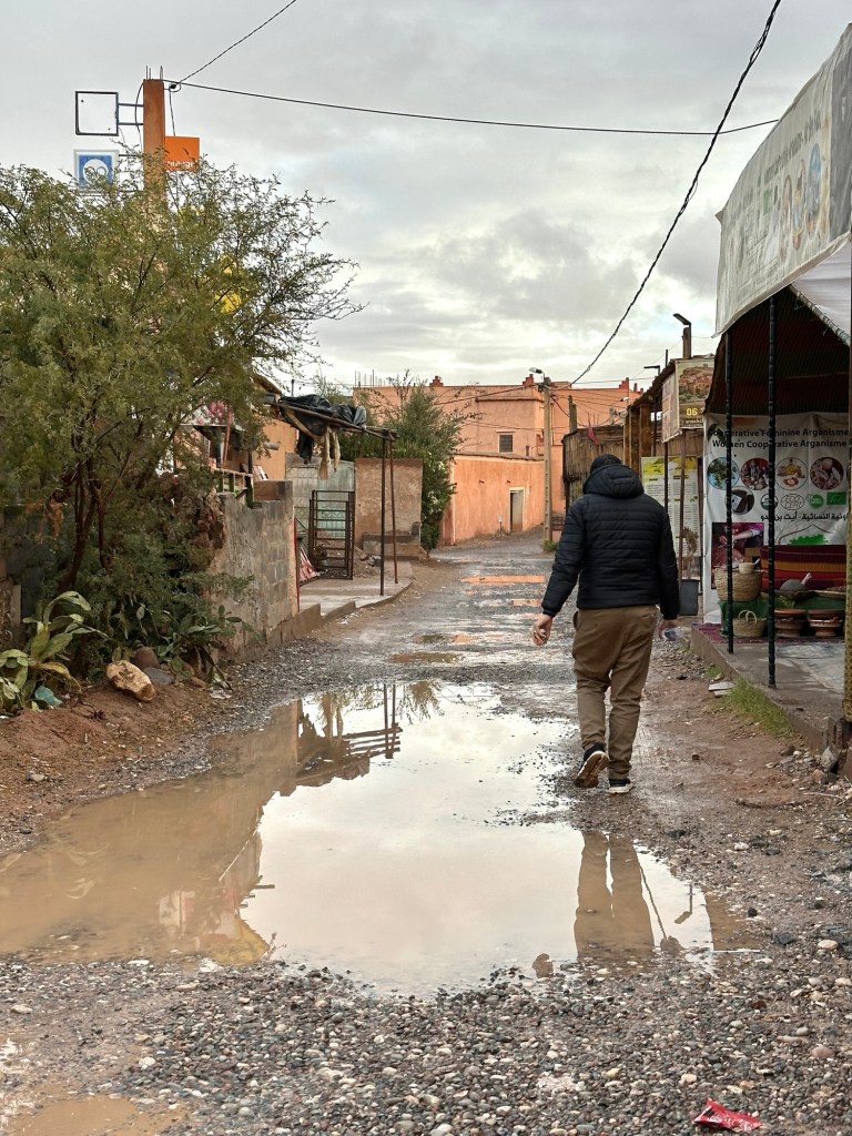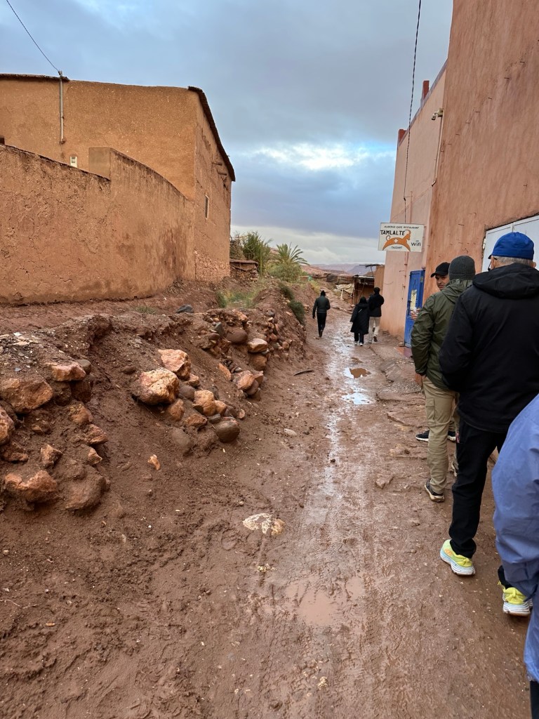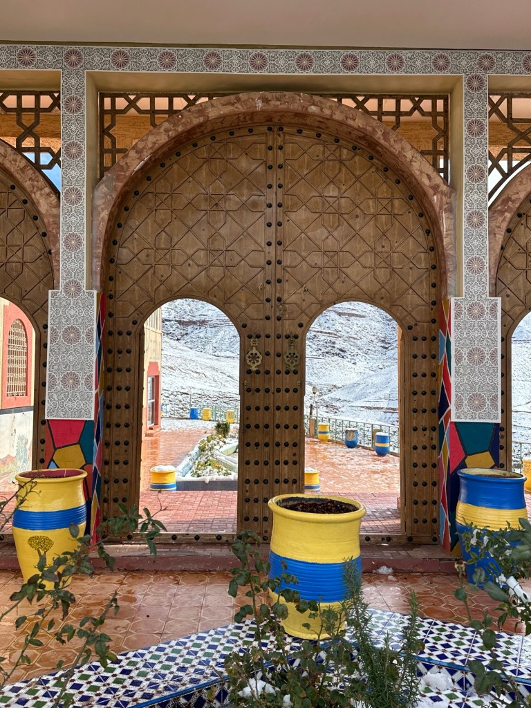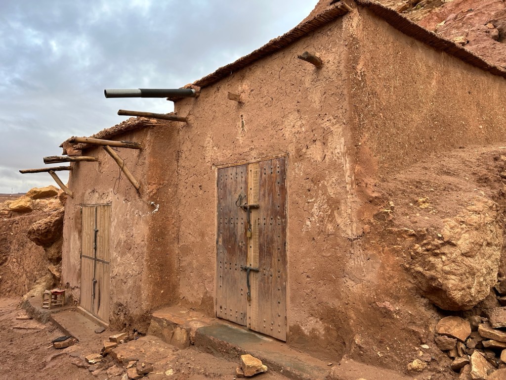 Aït Ben Haddou is a UNESCO site that is a former ksar (or village) that was a stop along the trader route for caravans. It is now primarily used for movies and tourism. It is a wet day from all the recent rain so we walk carefully to not submerge our shoes in puddles of mud in the dirt pathways of the old city as we slowly walk towards the top. It is at the top we have marvelous views of the city below. You really feel like you have stepped into the past from this view.