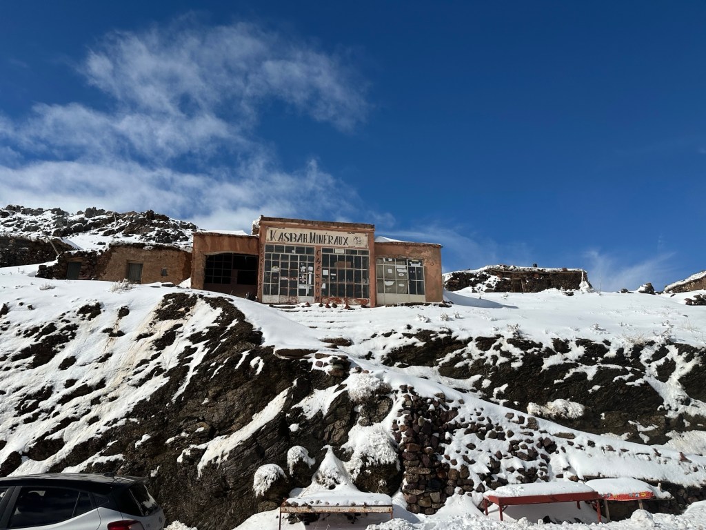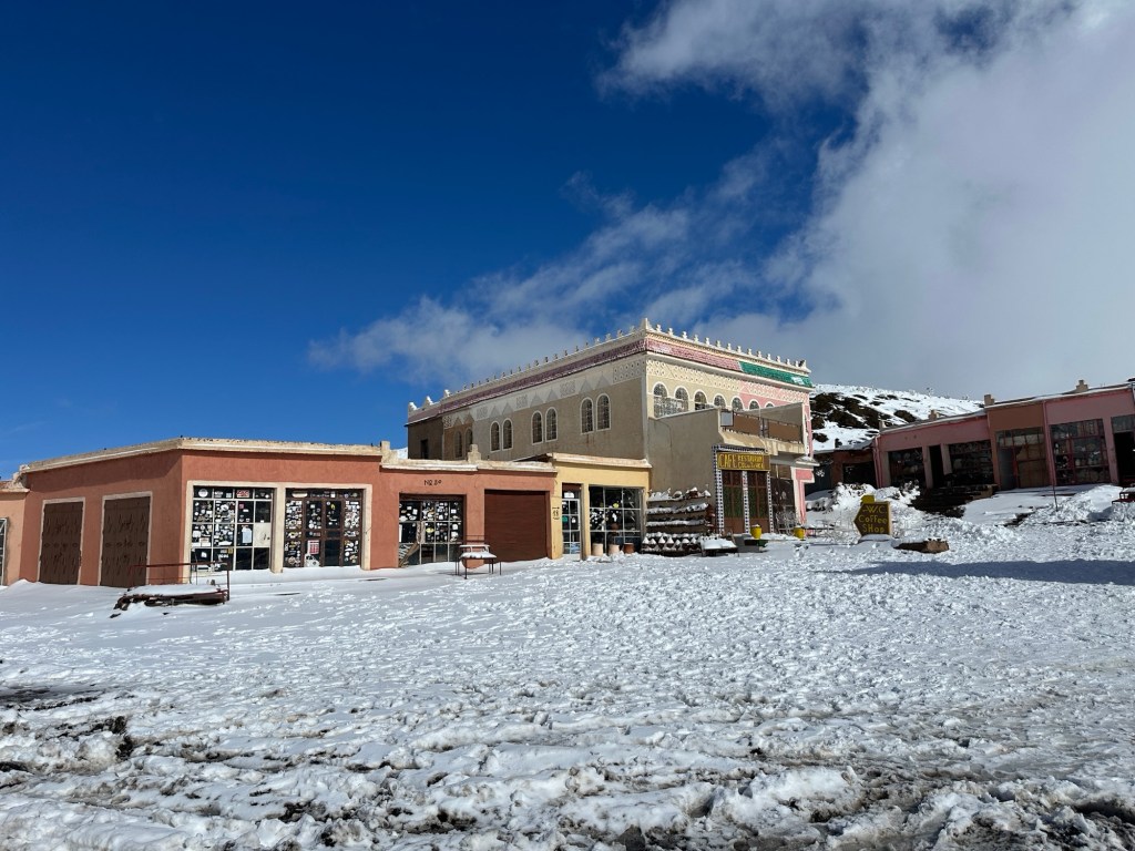 We next travel to Marrakech through the Tizi N’Tichka pass. We stop for lunch and pictures at the top and the high point.