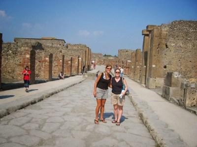 Today was traveling day from hell. The direct route from Rome to Naples was sold out and due to communication problems it was hard to figure out an alternate route. We finally decided on a ticket to Salerno. The plan is to check our bags there at the station and take a local train to Paestum. The town of Paestum holds the last Greek structures established in Italy. They are also the most well preserved. We begin our journey of Paestum by disembarking from the train. All we can see is a rural road that runs perpendicular and a small path straight ahead but no directional signs. After asking someone we determine that we need to follow the path straight ahead. The path is a paved walkway lined with brush, flowers, and agriculture. At the end of the path we find a street lined with tourist shops. We arrived after the tourist office has closed and could not locate a map. We ended up purchasing a guide book to direct us around. Once inside we witnessed how life would have been in an ancient Greek town. Lots of detail were given to the Greek temples where they practiced their pagan worship of gods and goddesses. We completed our visit with gelato.