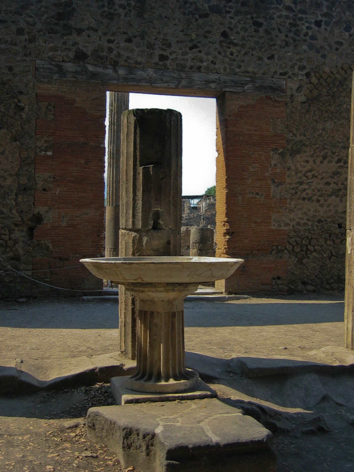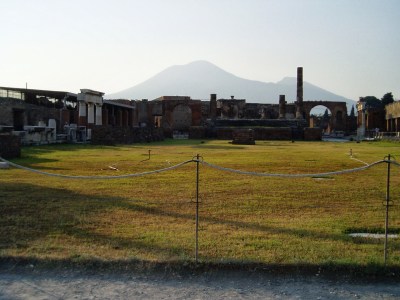 I woke up early in the morning to walk down to Amalfi. I took pictures while no one was around. I was able to witness the town waking up and preparing for the day. The original plan is to go to isle of Capri. We discover that we miss the only morning ferry. We decide instead to make a visit to Pompeii. After more train confusion, we finally arrive at Pompeii. Due to our original plan being the isle of Capri, we are both wearing sandals instead of walking shoes. It turned out to be a very poor idea. Pompeii was very rocky and rough. We spent most of the day tripping and slipping over rocks. At the end of the day, our feet changed in color from all the dust that they had collected. Pompeii itself was amazing. I was in the understanding that Pompeii was a small village that happened to be destroyed by the eruption of nearby Mt Vesuvius. That was not the case, Pompeii was a large functioning city. While walking around, we witnessed well preserved frescoes, impressive cooking appliances, and modern day looking buildings that once served as bars. The baths were impressive also, the Romans loved their baths. In the building that held the baths, we saw stone covered bodies as a result of the volcanic eruption (You could even see the expression on their faces). My favorite part of the city was the brothel. The brothel had rooms that contained rock beds. Above the door of the rooms, scenes depicted the services that could be provided. Very interesting. Also amazing was the large faun house, and the olympic garden (contained a huge pool – perhaps olympic size?). We ran out of time and were not able to see it all.