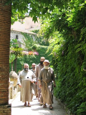 Today we visited the town of Ravello. Ravello is not too far above the town of Amalfi but due to the curvy roads required to get there, it is about a 30 minute trek. We walk along narrow streets like we had seen before in Capri. Although the streets here are more narrow and have much more character than Capri which is highly commercial and crowded with tourist shops. I took pleasure in walking the streets that contained many villas and hidden restaurants. Gardens are every where. Vines with ivy and flowers line many pathways. During our bus ride there, I viewed many lemon trees, many of which used to make Italy’s famous Limoncello drink. We were able to sample this drink today from a store that produced it. Limoncello is at the same time bitter and sweet. We are told that it is made from the seeds of lemons and then fermented. A woman sitting next to us at lunch recommended that we visit the Villa Cimbrone. The villa is surrounded by many gardens. A trail through a wooded area in front gives a spectacular view of the water. At the end of the path was a statue of a man with a little boy on his shoulders. We soon reached another courtyard – a beautiful rose garden. We pass two more gardens, one with two statues and another with a fountain one end and another with a huge covered patio. The greatest of all was a rainbow of flowers that appear along the path back to the house. After the villa, we take the bus back to Amalfi to catch the ferry to Salerno. From Salerno, we catch the overnight train to La Spezia (6 hour ride!). Could spend at least 5 more days here.