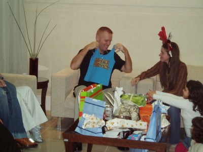 That evening we attended the bridal shower for Fe. It was at a family members condo (if I remember correctly). The condos were nice and highly secure (I guess they have to be in Sao Paulo). We were buzzed into a secure holding area and after the doors shut firmly behind us, we were let into the grounds of the condos. Note: At the time there was high crime in Sao Paulo – Fe, Fe’s mother, and cousin were robbed of their cell phones and purses at a traffic light prior to our arrival – thus explaining why were were unable to contact them.