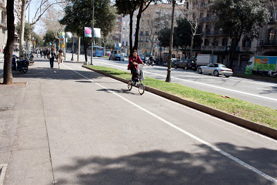 Barcelona has a good network of bike and pedestrian paths down many of its avenues as well.