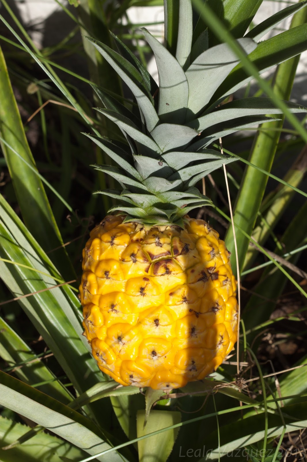 I had high hopes for my pineapple but it is no more. Apparently the abundance of rain was too much for the plant and the pineapple turned yellow. I was going to leave it for a while longer but the pineapple smell was strong. I will try to cut it open tomorrow and see if we can eat what is there.