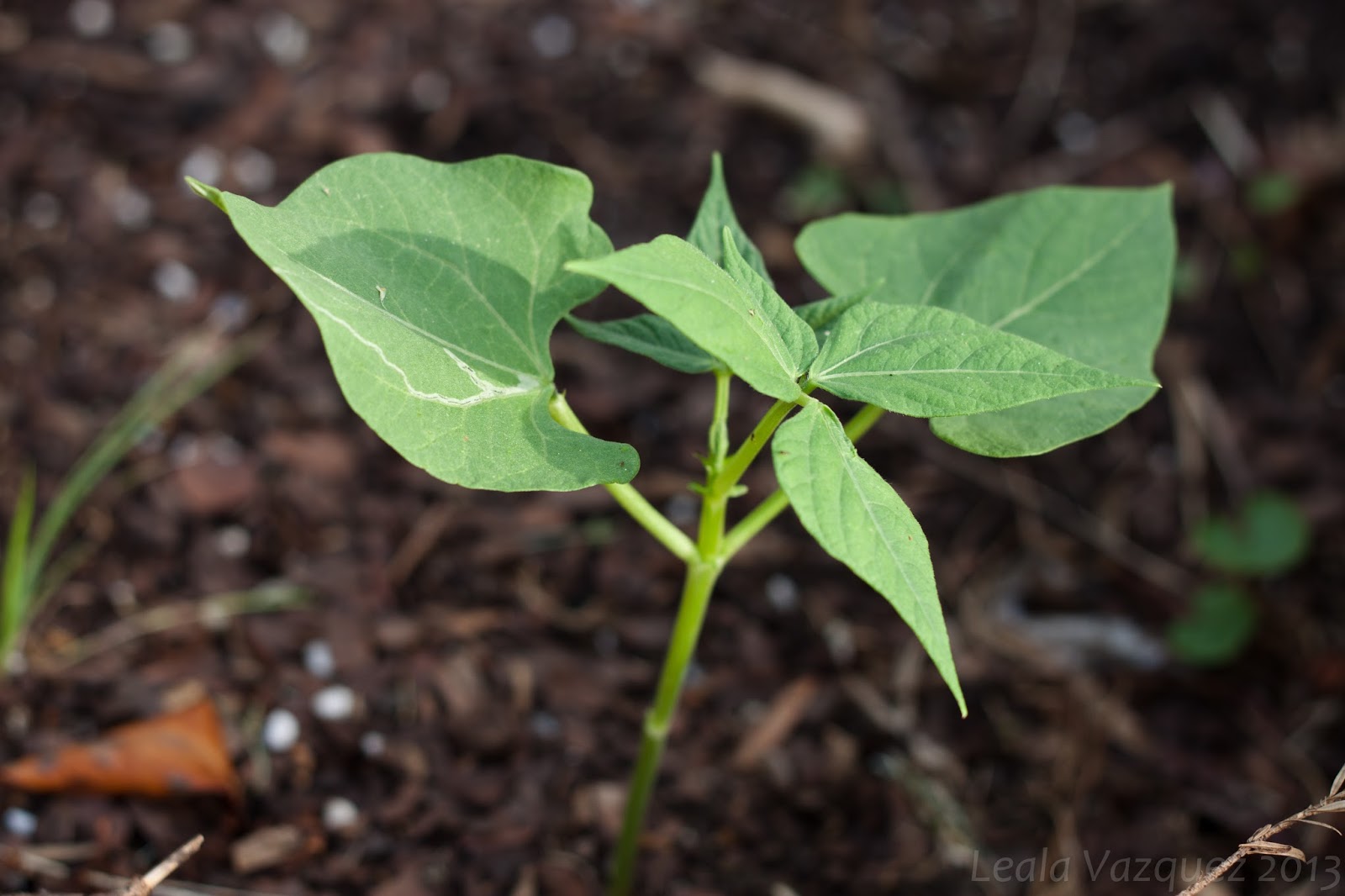 Summer crop of pinto beans sprouting while the garden waits for fall crops.