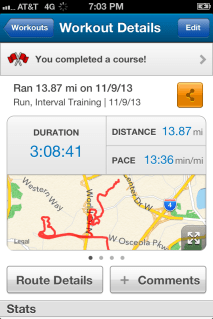 The race was pretty uneventful at the beginning but something happened miles 8-10. I think this is when my lack of discipline in training came back to bite me. I slowed down in the miles and could not physically push myself to speed up. When my interval watch would beep for walk mode I would zone out and lose and minute or so of running time – this happened multiple times during these miles. I am going to use this stretch of miles as an example of why consistency in training is so important. I was 10 minutes faster than in the race last year’s wine and dine but still 6 minutes slower than my best time. I did not reach my goal this time but some day I will.