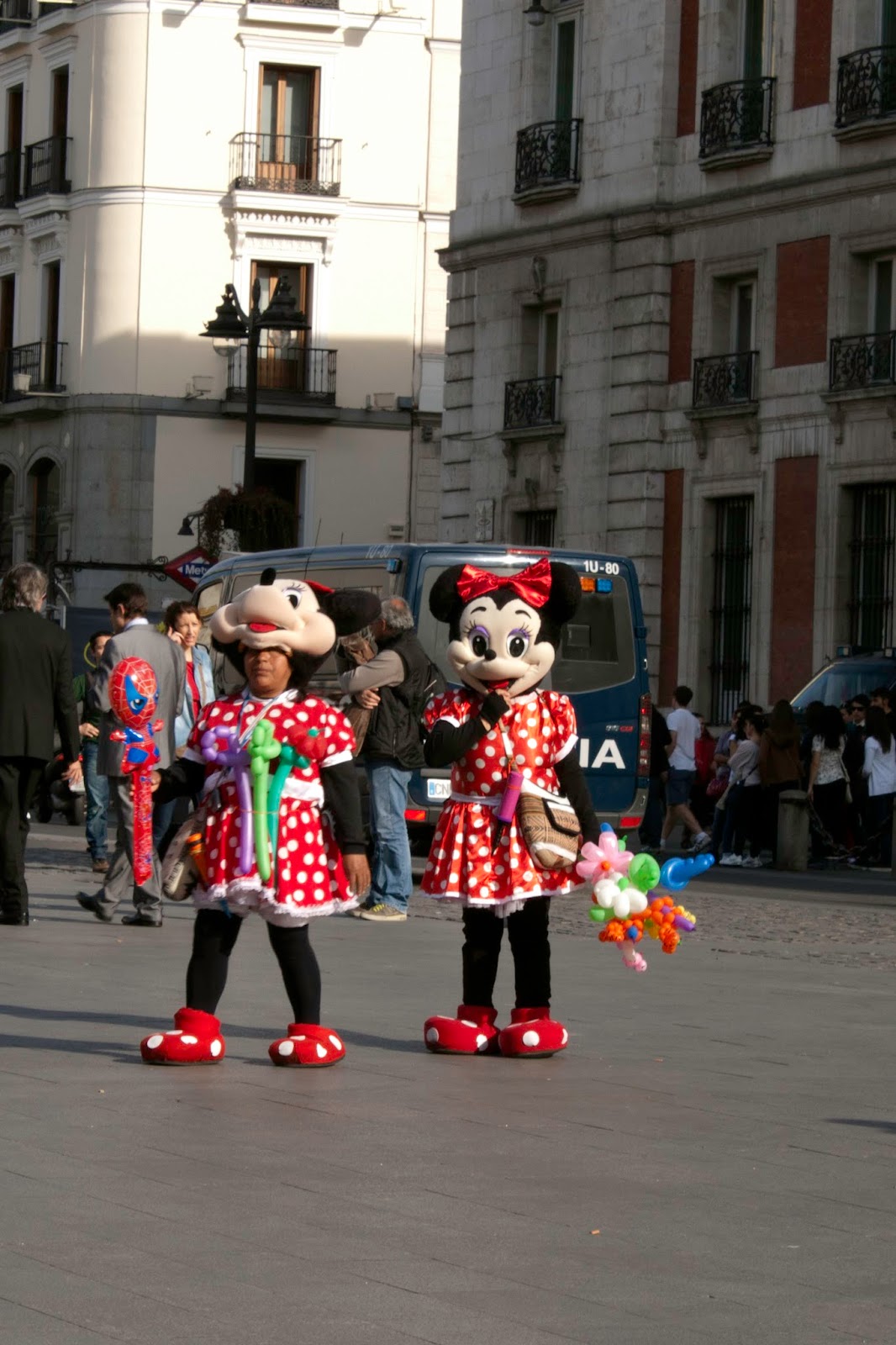 We started off our most recent visit checking into the modern style Hotel Regina (see room above). The hotel was affordable and in walking distance to most areas of interest – including Puerta del Sol where we saw these ladies below trying to work the crowd.
