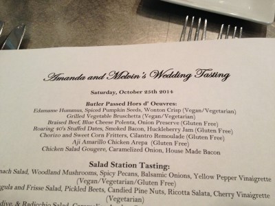 They carefully explained each part of the menu. We learned how the dishes were prepared. For this wedding they have to cater to vegetarians/vegans, provide choices for those with gluten intolerance, and accommodate many food allergies. The menu was customized to accommodate these needs as well as provide dishes for discriminating tastes. It is a very well thought out menu.