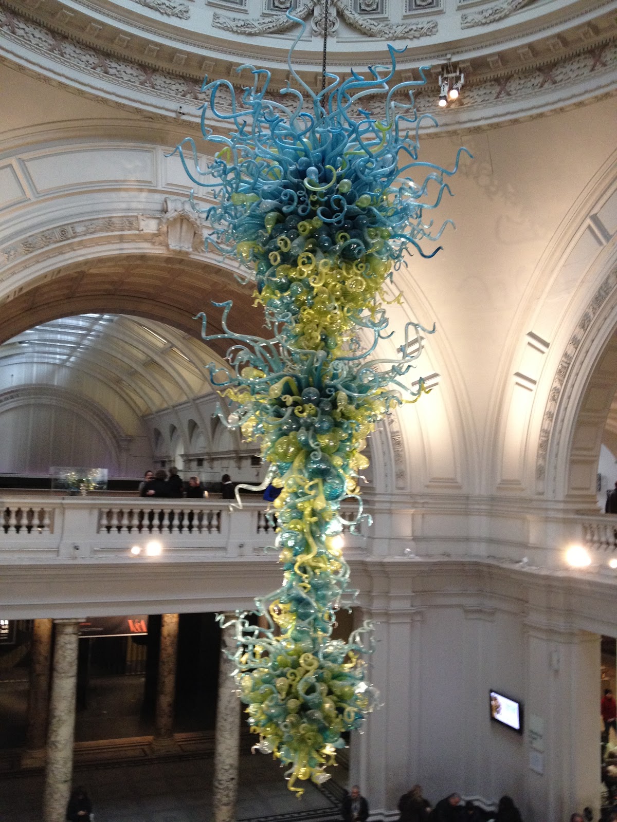 To start our sightseeing we started at the nearby Victoria and Albert Museum. It was a great museum that is free to visit (they have a donation box). There was a David Bowie costume exhibit that I really wanted to see but it was hard to get a time to visit and I couldn’t get my companions to go with me (and it cost $$). We did get to see this amazing Chihuly chandelier though.