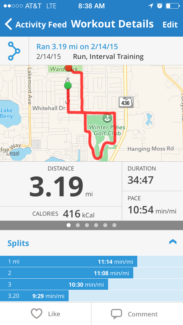 Finally van 1 is done. Even with the selfie delay my pace comes in faster than I expected. The speed workouts really do work!