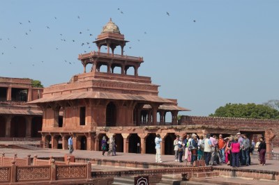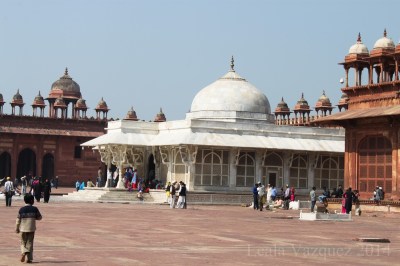 After 25 miles from Agra lies some very interesting sandstone buildings in the city of Fatehpur Sikri. It was capital of the Mughal empire for a time during the 1500’s. The ruler Akbar had multiple wives of different religions because of that you can see a mix of faiths in the design and architecture.