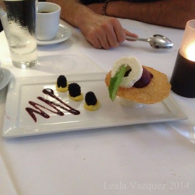We finished it off with an interesting goat cheese frozen dessert. It was perfect for my taste because it was only slightly sweet but creamy. If you like your desserts super sweet you might want to chose another.
