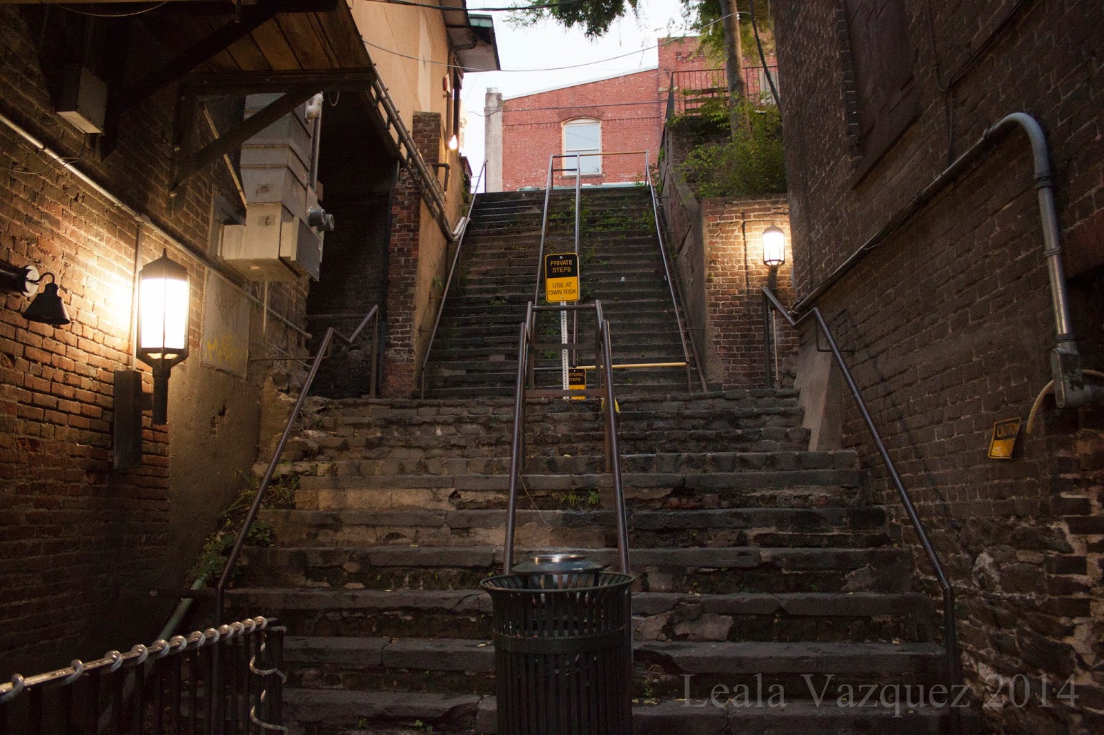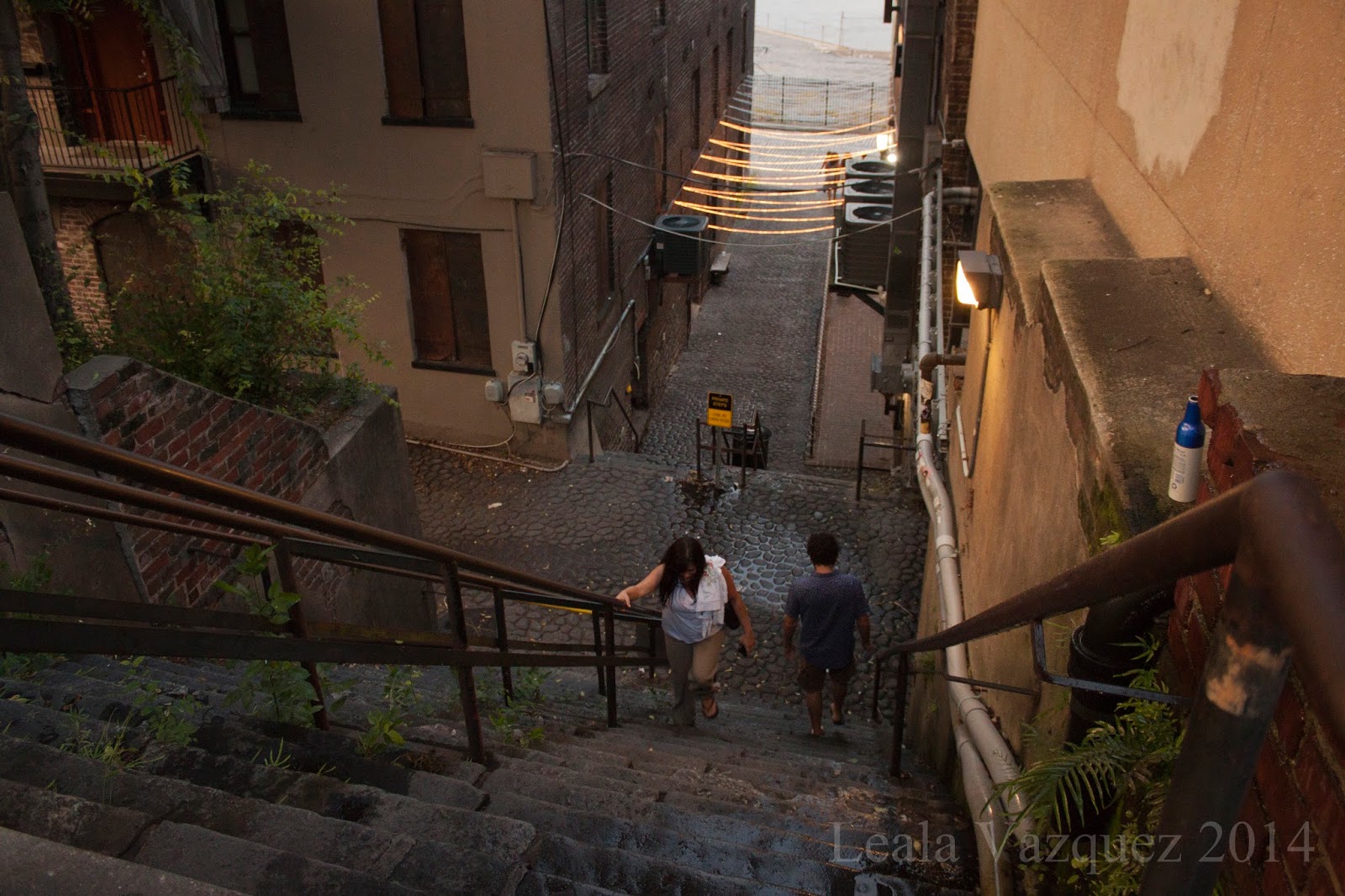 After dinner we decided to walk along the water. My husband and I remember a line of bars up and down the water on our previous trip; the economy must to hit many of them hard because many places were no longer open. We still had a nice walk that started by going down these steep, wet, slippery stairs.