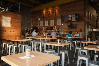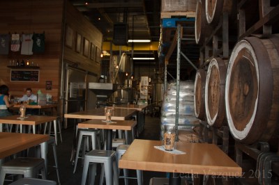 The decor is typical of most new breweries: metal chairs, wooden tables, warehouse feel.