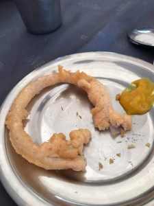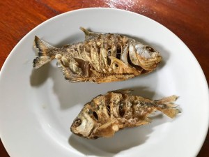 The chef cooks up our fish to enjoy. Not much meat but most of the fish is edible. It is like a crunchy snack.