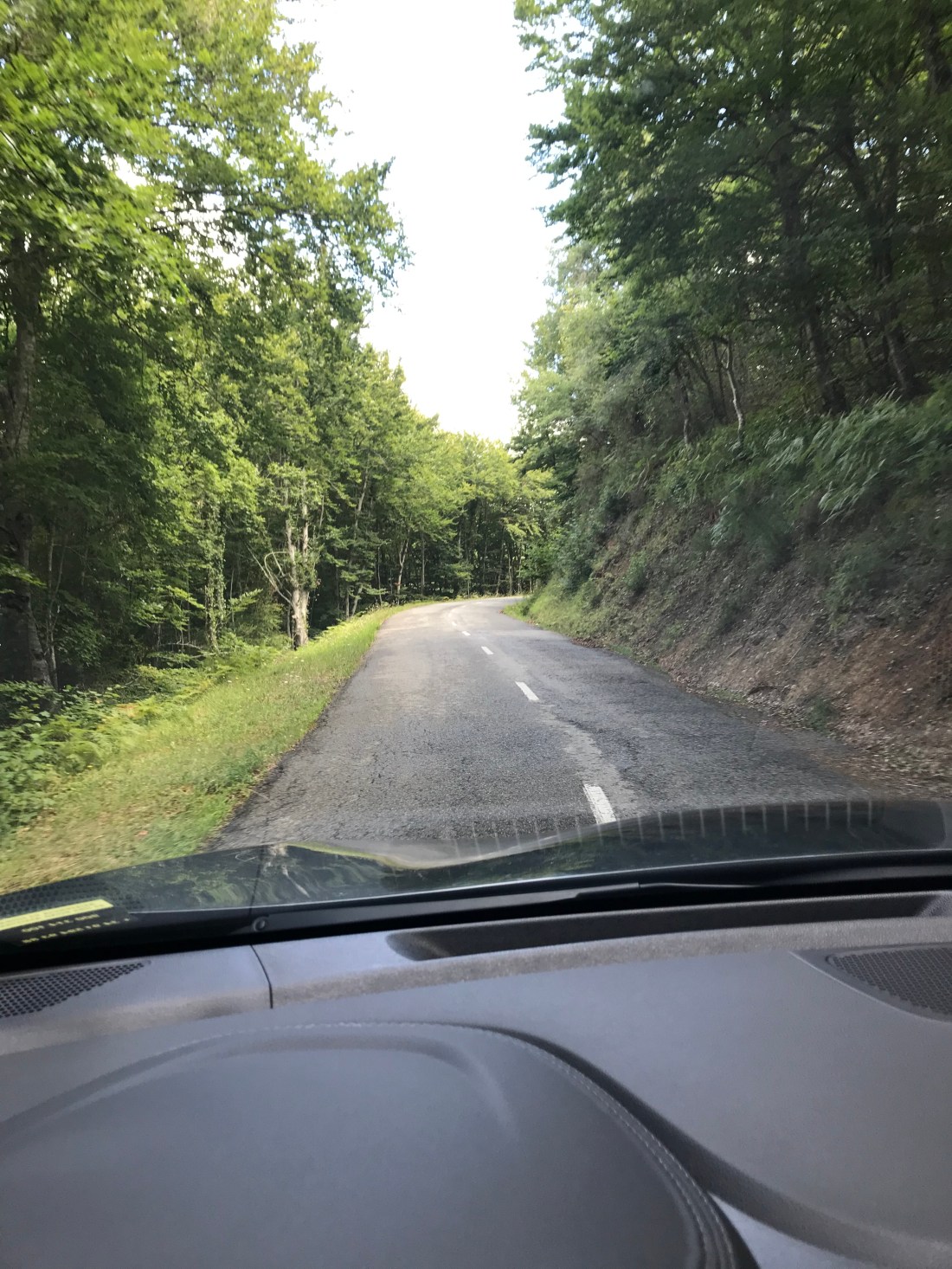 The GPS reroutes me up a mountain route through an old town with a road that keeps get getting narrower and narrower until it gets to the point where really only one car can fit on it. I feel like I am on a bike trail. I also feel like the car will fall off the road at some points if I have to yield to a car coming in opposite direction.