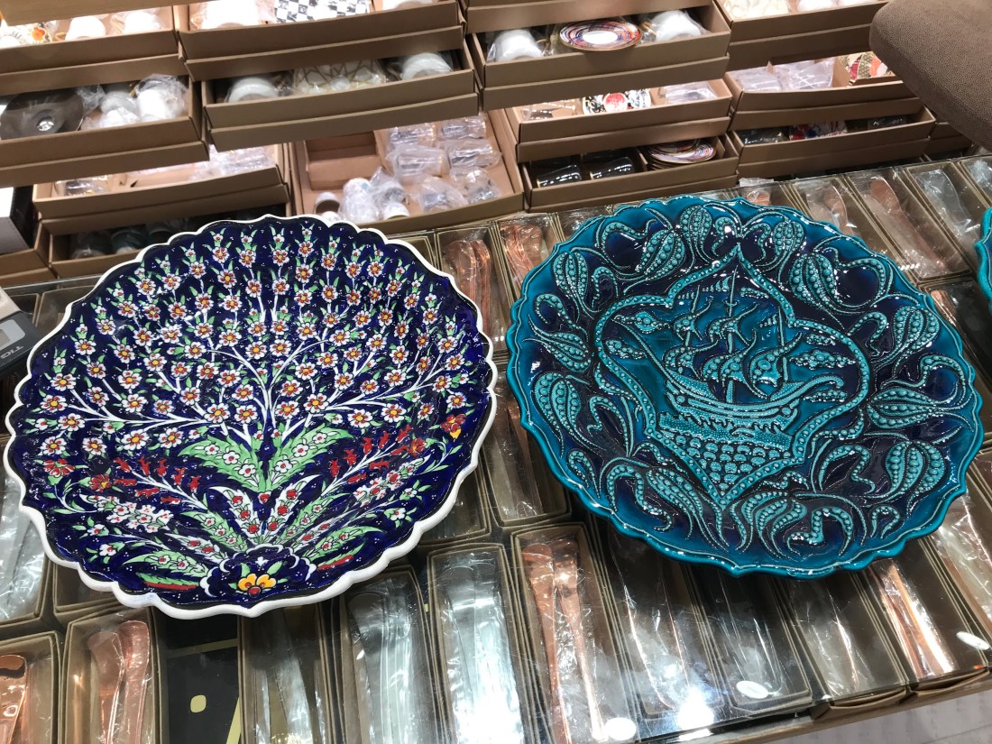 I do return to the markets a couple weeks later but I do not buy that Turkish lamp. Logistically shipping it home doesn’t seem worth it and the power supply is meant for European plugs only. I would have to get it re-wired. I kick myself for not buying the battery powered ones I saw in Selcuk. I do buy some nick knacks and some beautiful plates (that I later discover I can probably not use for food serving due to their design – doh! Oh well, they will still look good on display).
