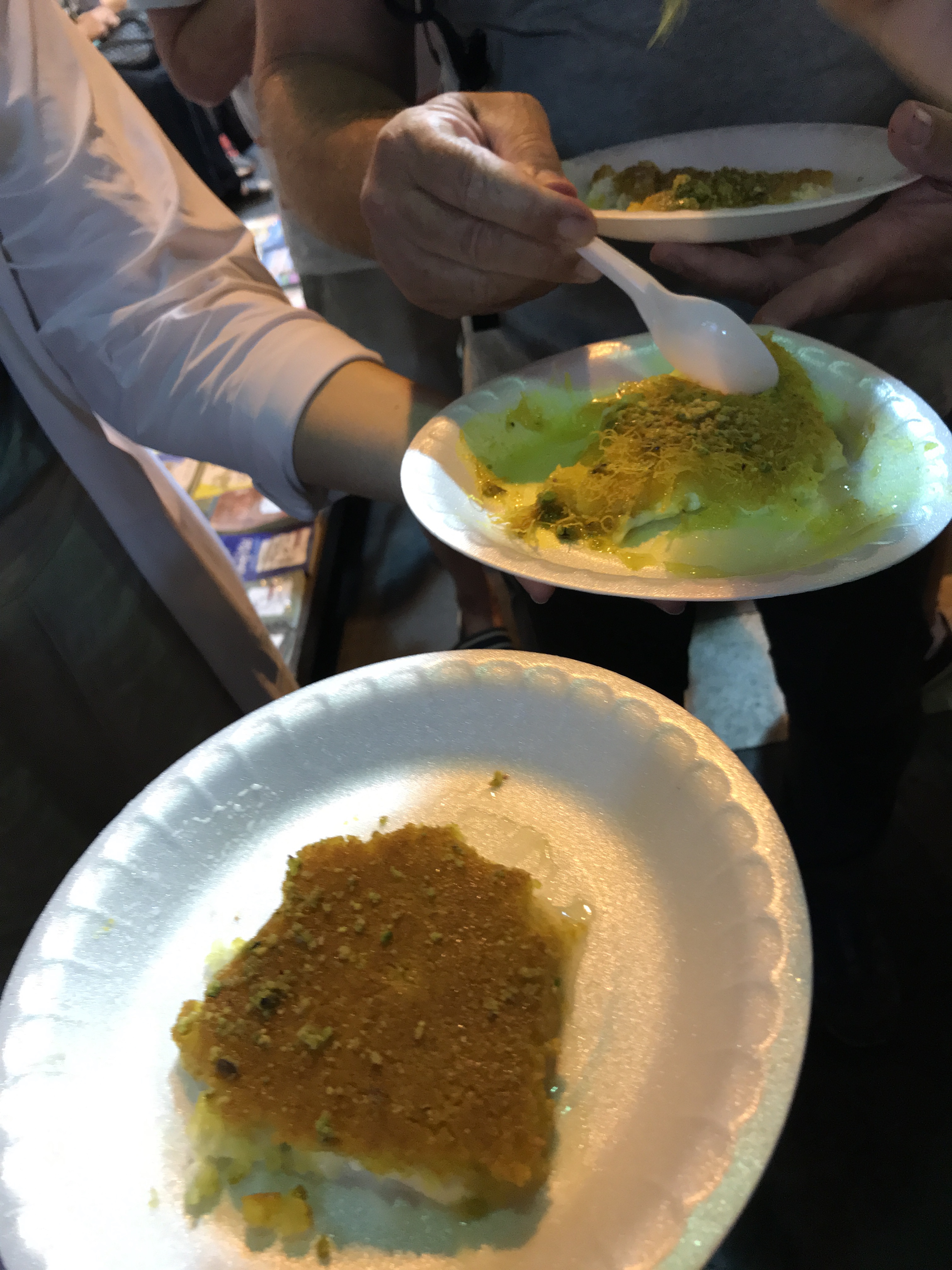We stop first at Habibah Sweets and try some kunafa (one of my favorites) and something else similar.