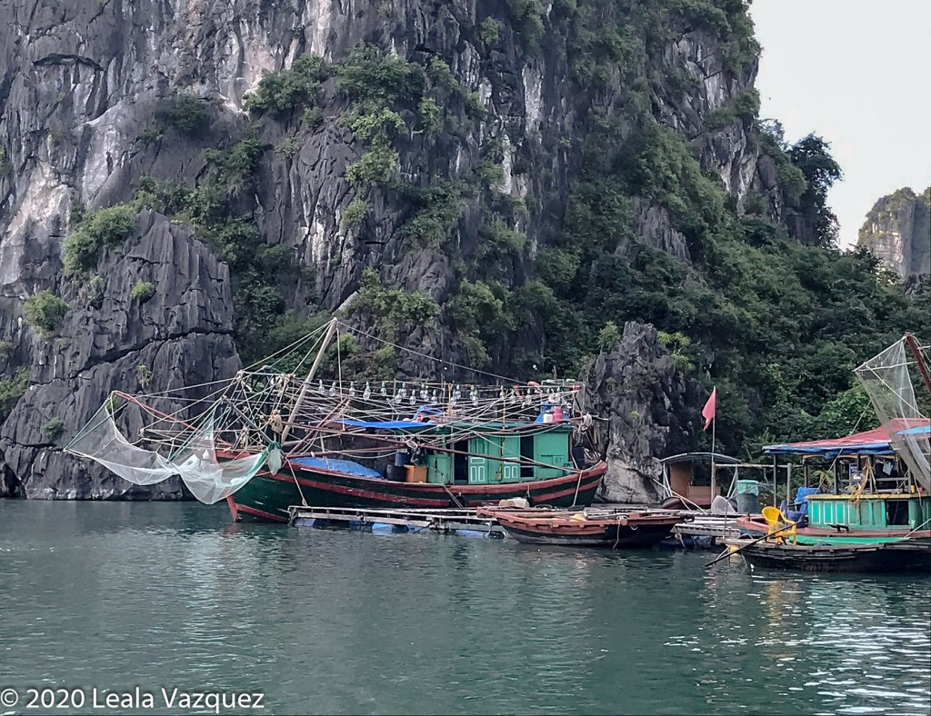 This morning we start with a visit to a floating fishing village. Vietnam used to have much more of these villages of complete families who live on the water. Now many are paid by the government to give up their fishing life and move to land. Kids of the existing communities are forced to go to schools. It is said it is combat pollution but probably also so they can cater to more tourism on the waters.