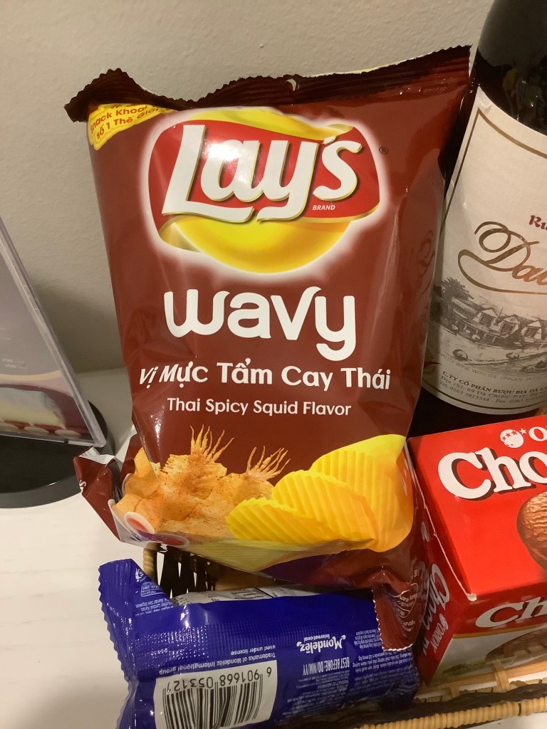 My room has some snacks to purchase. The universe must hate me because look what I am offered – squid chips!