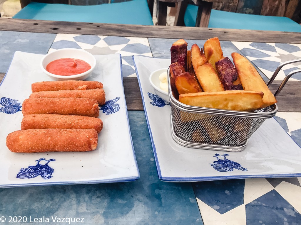 Very unhealthy lunch of cheese sticks and yam like fries.