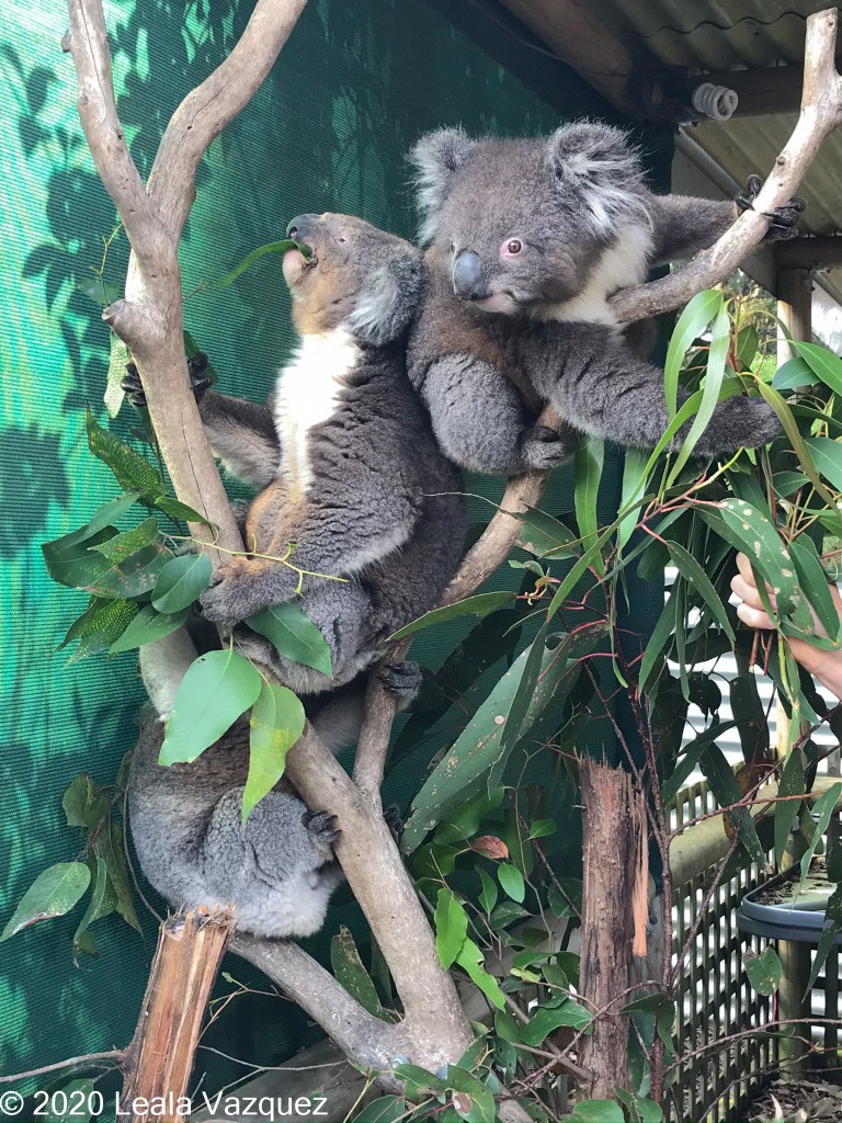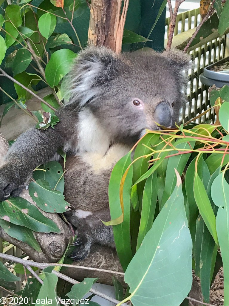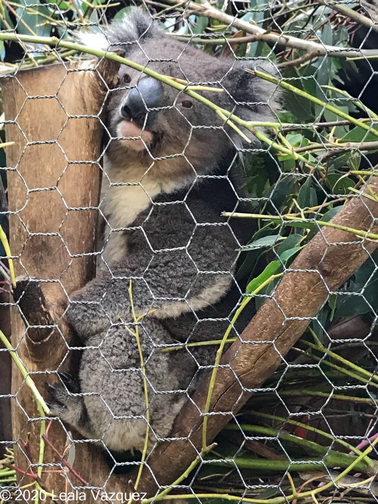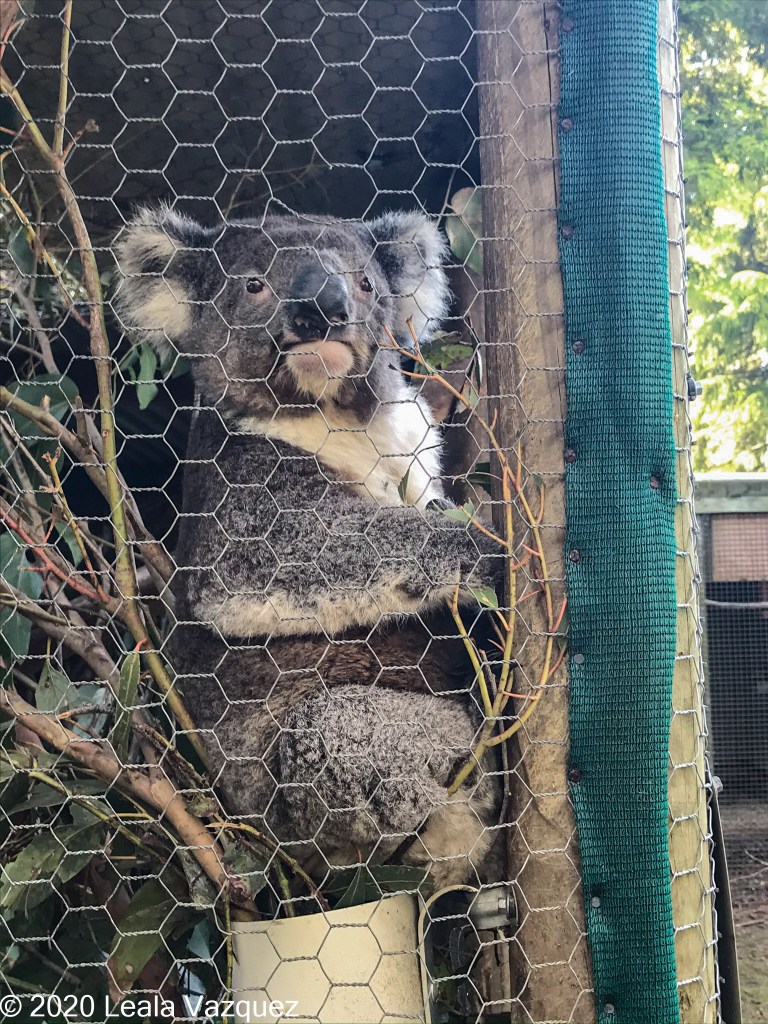 On my first day I only notice the caged koalas. I find out the next day that most of the koalas on site are able to roam free and the caged are baby koalas that don’t have the intelligence to not wander off and get hurt; they are enclosed for their protection. The adults stick around because they are fed regularly.