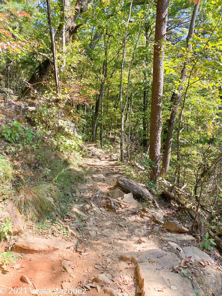 The trail starts out relatively flat then is continuous inclines and declines. It can be quite tiring to an out of shape hiker. I stop along the way to rest and enjoy beautiful views. I feel blessed that I am able to enjoy fall foliage and have cooler air to hike in. I am warm but not overheated; I love hiking in this type of weather.