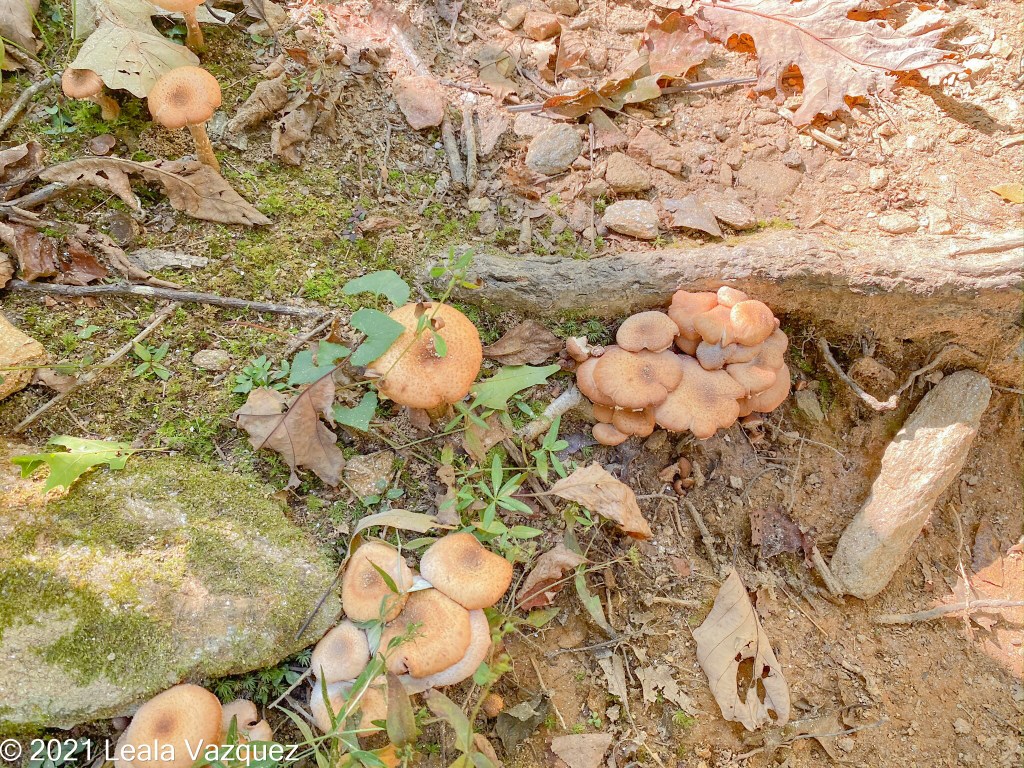 I notice a skunk-like smell. I think some people are smoking pot on the trail. It isn’t until later that evening that I discover it is the plant called Galax that grows along the trail.