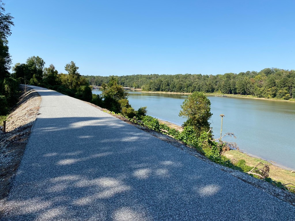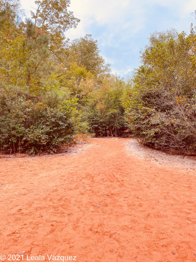 Most of the trail is flat but there are some rocky parts. There is a fun section with some bare trees that look like they are out of a horror movie. I am sure they look eerie at night.