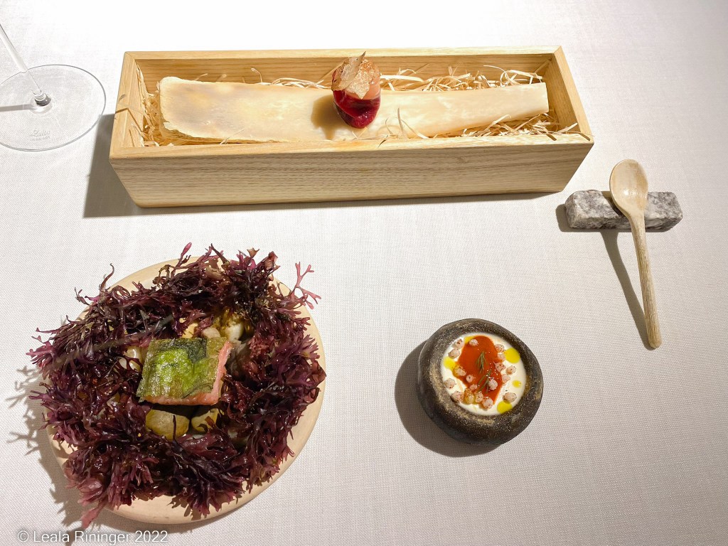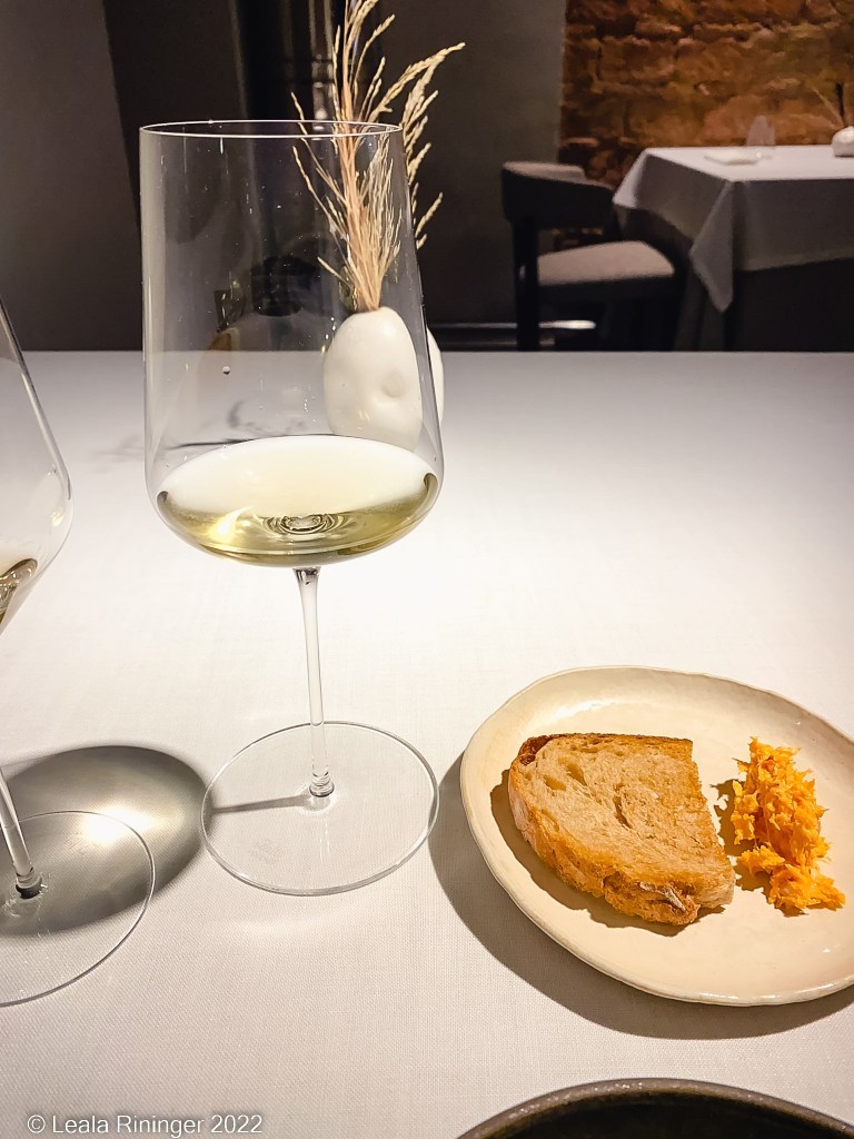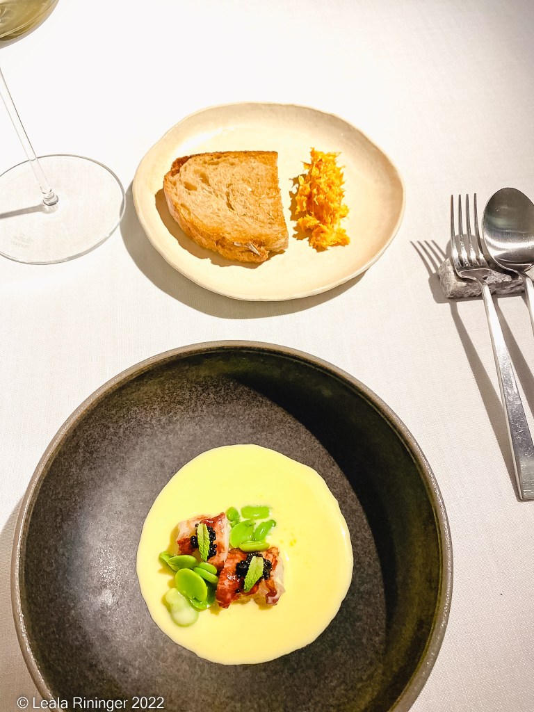 The next course is the bread course. I normally don’t get excited about restaurant bread but the two different types of breads with the accompanied olive oil and butter are amazing. I forget the story behind the butter but I love butter with a story. The calories and fat don’t count as much when the butter has a good origin story, right?