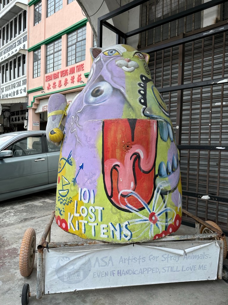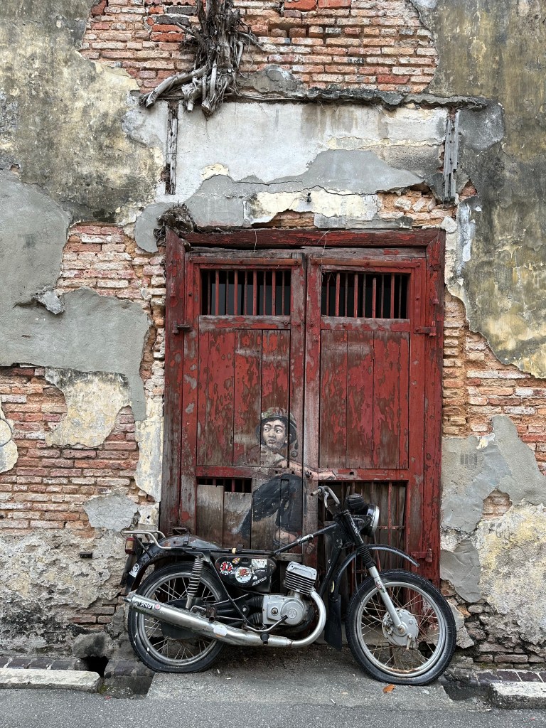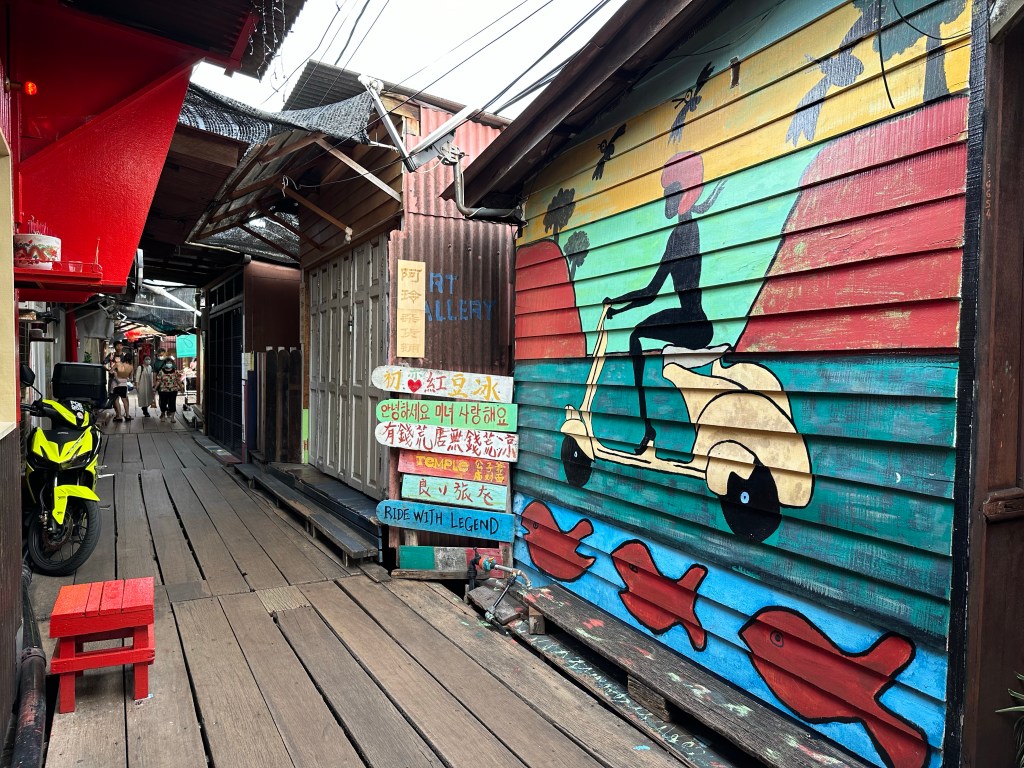 The jetty area does not open until 9 am to visitors so I am still too early. Luckily the char koay teow place that my tour guide recommended is open (Xen Teck) so seems like a good time to get breakfast and some of that extra strong coffee. There is a whole way to order coffee in Malaysia, kopi or kopi O or ??. I can’t remember the correct way. The default way comes with sweetened condensed milk that I was happy to try the first time (Do like the locals). But now I want it my way with unsweetened with just milk over ice. I thought I ordered it correctly but I got the sweetened one again. Good thing I do lots of walking to walk off all this sugar. The char koay teow is good; it is different from the one I had before since this has thinly sliced pork sausage in it (you don’t see it in pork in the other tourists areas out of respect of the Muslim community). It also had these little button like things that were slimy. I first thought they were mushrooms but they could be oysters? Sometimes it is better to not know. Anyway, the dish is good and satisfying, It is the breakfast I never knew I wanted.