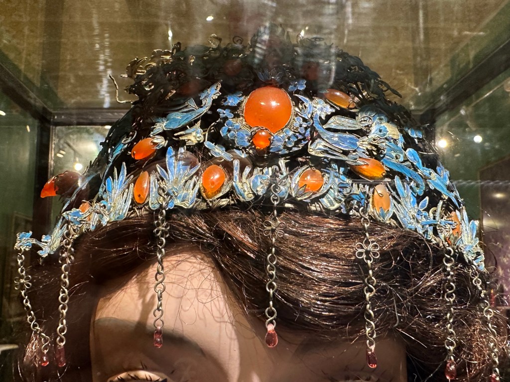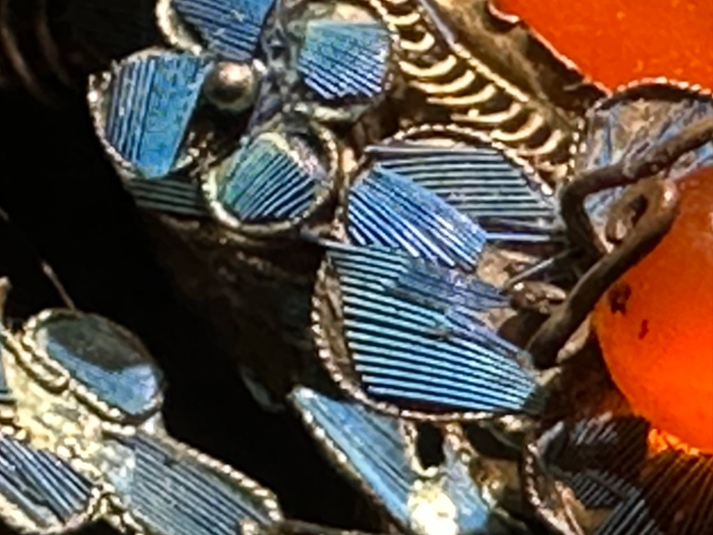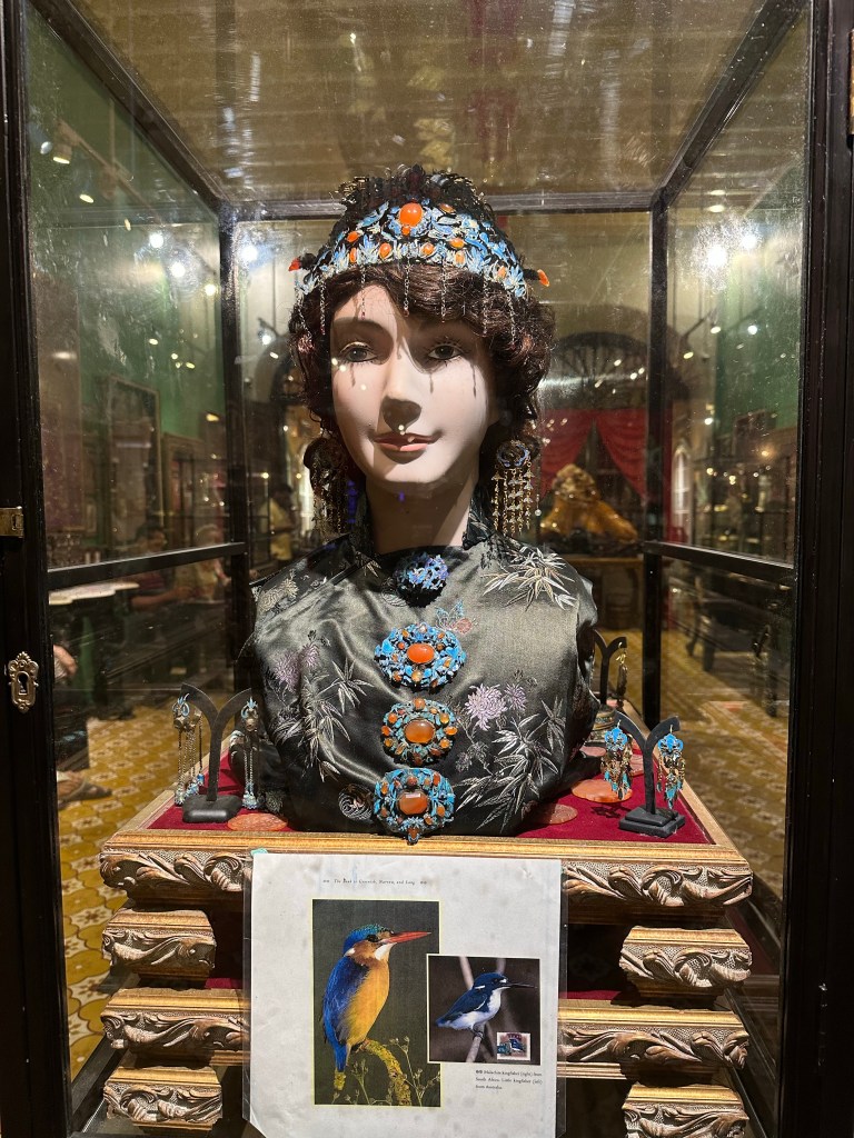 One very interesting piece from this museum is a piece of blue jewelry. It is actually created from someone painstakingly attaching blue bird feathers. Birds were not killed for it but I am sure it was painful for them. It is not allowed anymore.