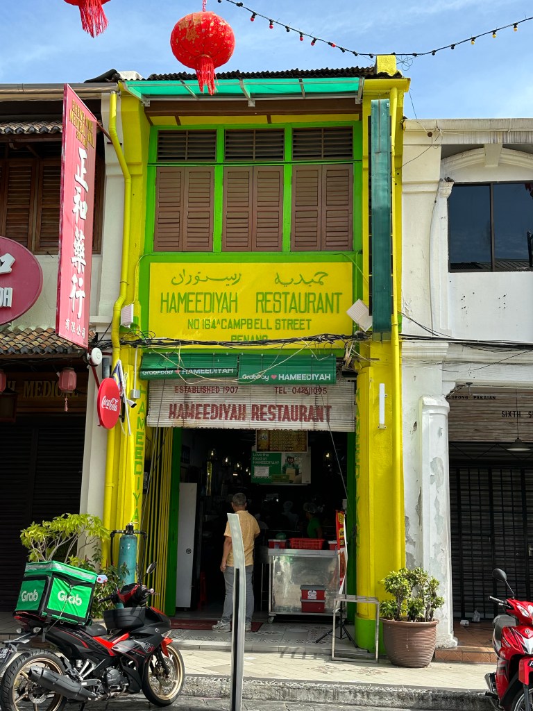 I finally try Nasi Kandar at the very popular Hameediyah Restaurant. It has an odd setup where you order your food from one store front but then you go a couple store fronts over to eat. I had a nice gentleman help me with the process except I almost walked out of the first building without paying. This Malay/Indian fusion cuisine is a a signature dish of Penang: a plate of hot rice, some fried chicken, beef curry, some turmeric-laced cabbage, or what you choose. There is a short line but I went shortly after opening time in the mid-morning.