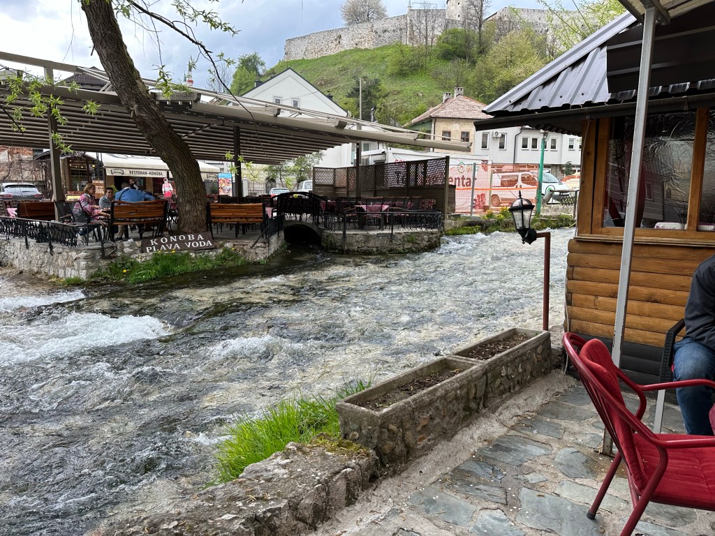 We stop for Bosnian coffee, not unlike Turkish coffee if you are familar. This place near the water has a special where the cofffee comes with a cigarette – smoking can be considered a national pastime here, it is still wildly popular.