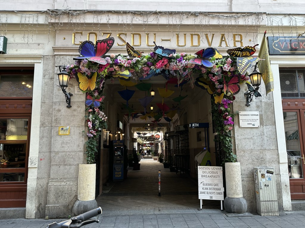 From my stop it is about a twelve minute walk according to google but with my bags and me being me it takes about twice that, plus I stop to admire things around me. It becomes clear that my apartment is in the “happening” part of town, the Jewish Quarter in Pest. Hopefully I’ll have some stamina to stay out late a night or two.