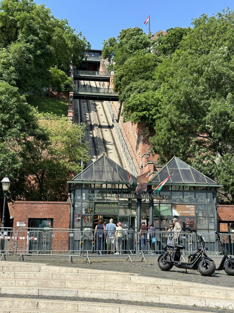 I start walking toward the funicular to get to the upper part of Buda. The famous chain bridge to cross the Danube is closed for repairs for pedestrians so I cross another bridge. I am enjoying the architecture on the way.