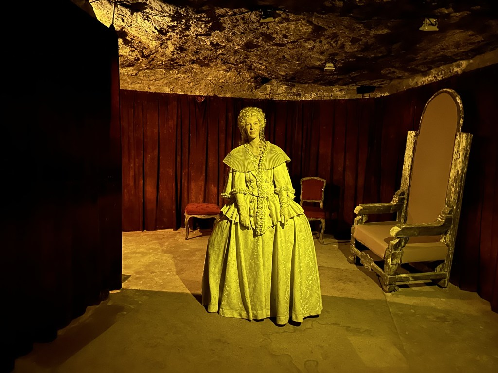 Now that I have food and dessert out of the way I head back to the labyrinth. Again I didn’t know what to expect but I get a very bizarre and creepy experience. The visit starts with statues of mostly famous people then leads into a wax museum type experience with wax figures acting out an opera….with the opera music playing in the background. You then have the choice to continue on the well lit path or follow the pitch black path. I am up for adventure so I went the dark way. When I say it is dark, I mean it is dark. There is an occasional green light on the floor but I spend the majority of my time with my hands against a stone wall following it around listening to water dropping. Occasionally there will be music playing and a hidden creepy wax museum figure behind some bars. There is a little rope part of the way you can grab to take you along so I started using that eventually. I got creeped out and returned to the light. Only after looking at the tunnel map I realized it isn’t a true labrynth so I really wouldn’t have gotten lost. In fact a tour guide tells me later that these tunnels actually connect many of the residential buildings in the city through basement openings. They utilized an existing cave system to create a sort of alternative entrance and exit situation for the city. Kind of fascinating to think about it.