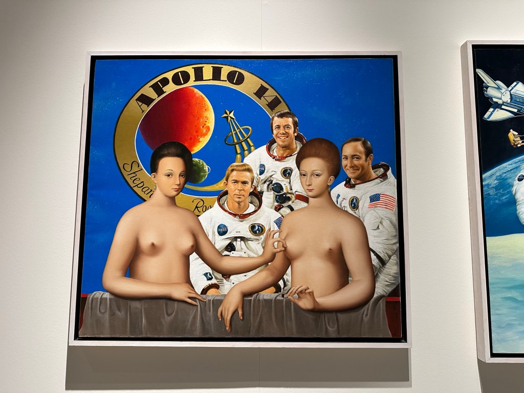 The next set of art is really interesting because it inserts a subject in a totally unrelated scene. There are a series of paintings of astronauts with historical artwork subjects inserted.