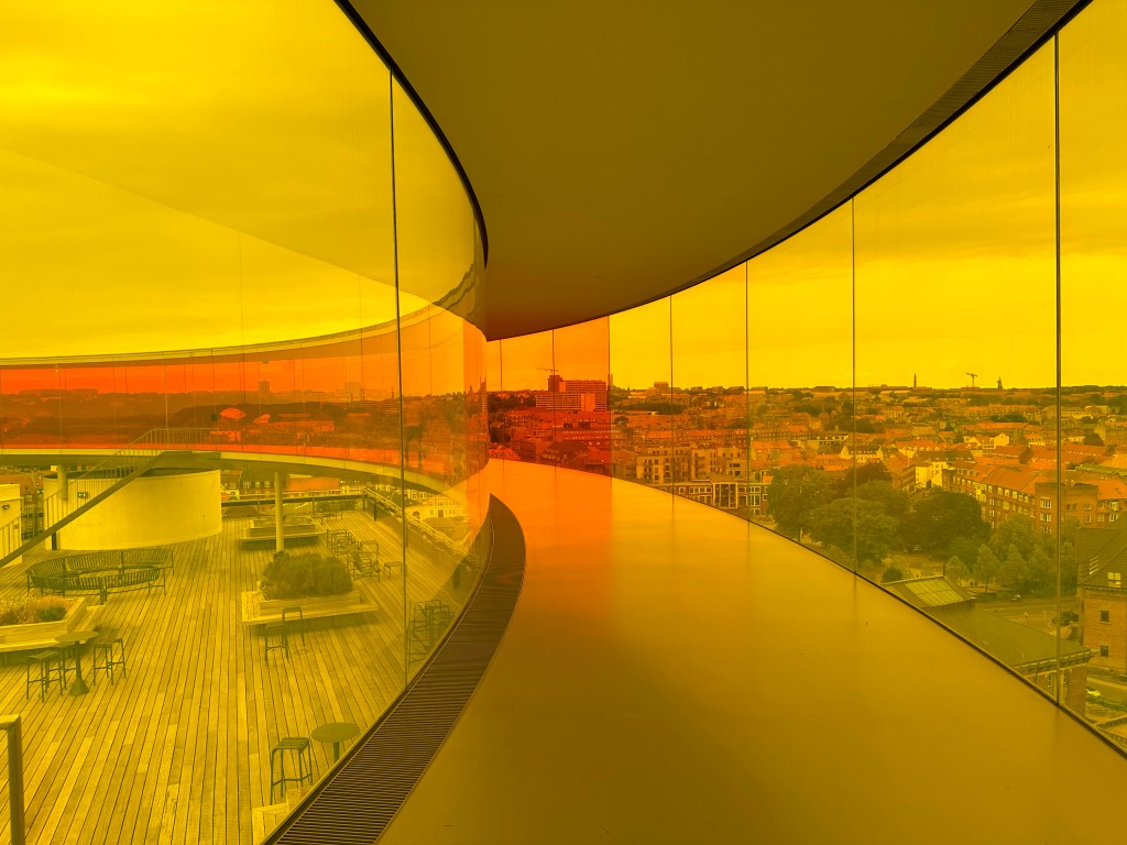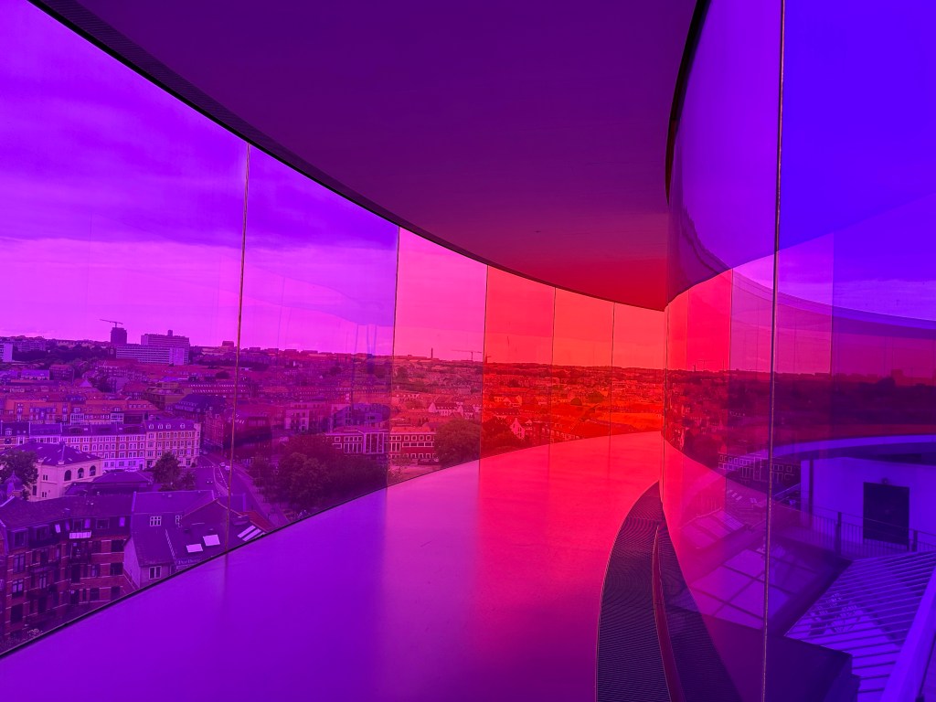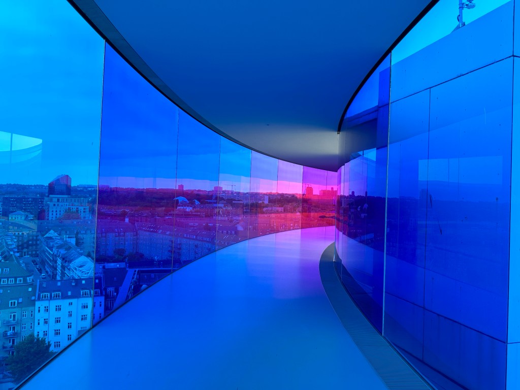 After I drop my bags I follow the path along the canal to the ARoS Aarhus Art Museum, a modern art museum. One of the big draws of the museum is the rainbow skywalk above that is indeed cool.