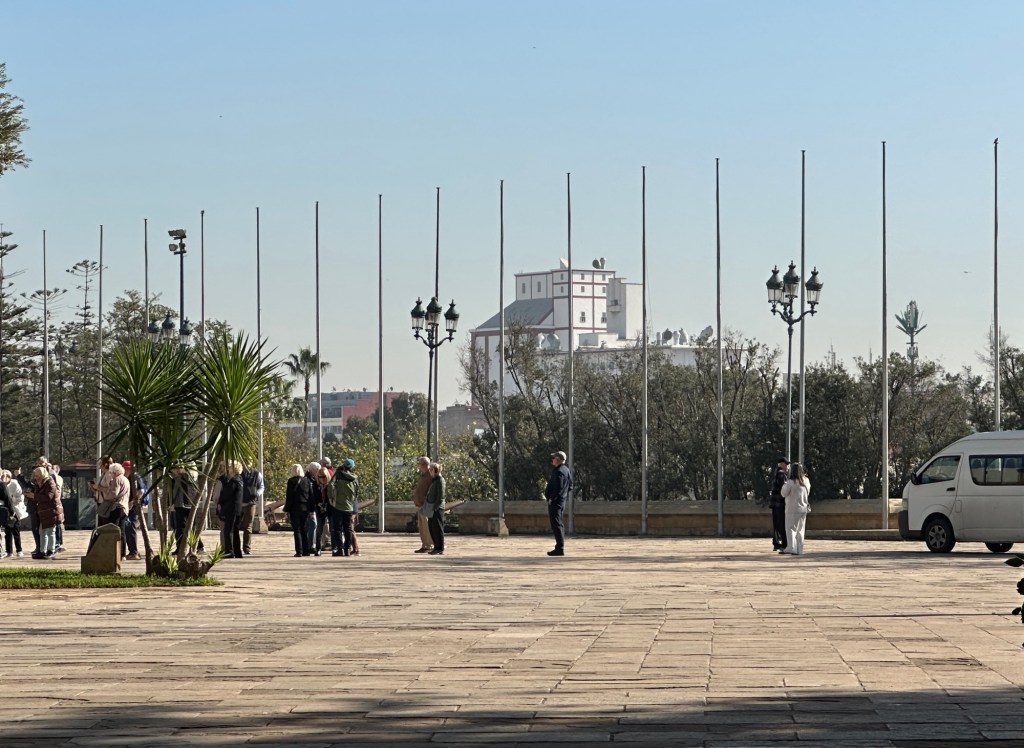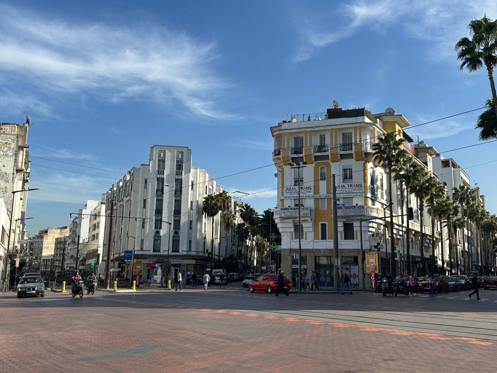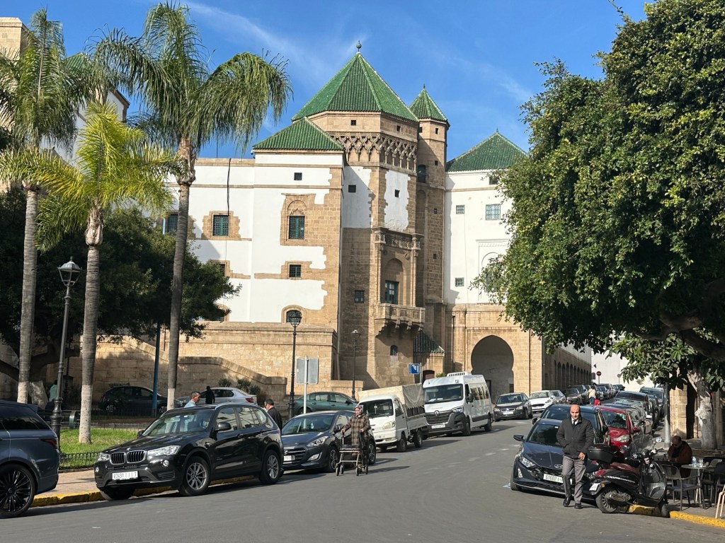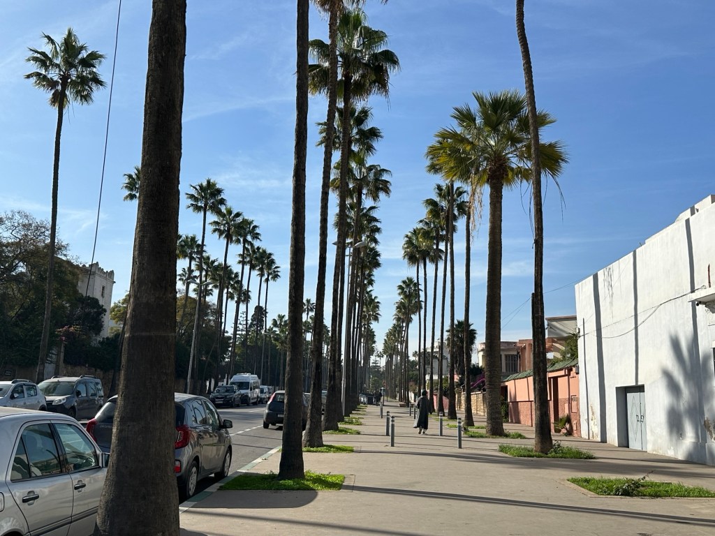We then plan to walk back to the old Medina to view all the shops but it has us walk through the expensive neighborhood in town. We see the royal palace off in the distance.