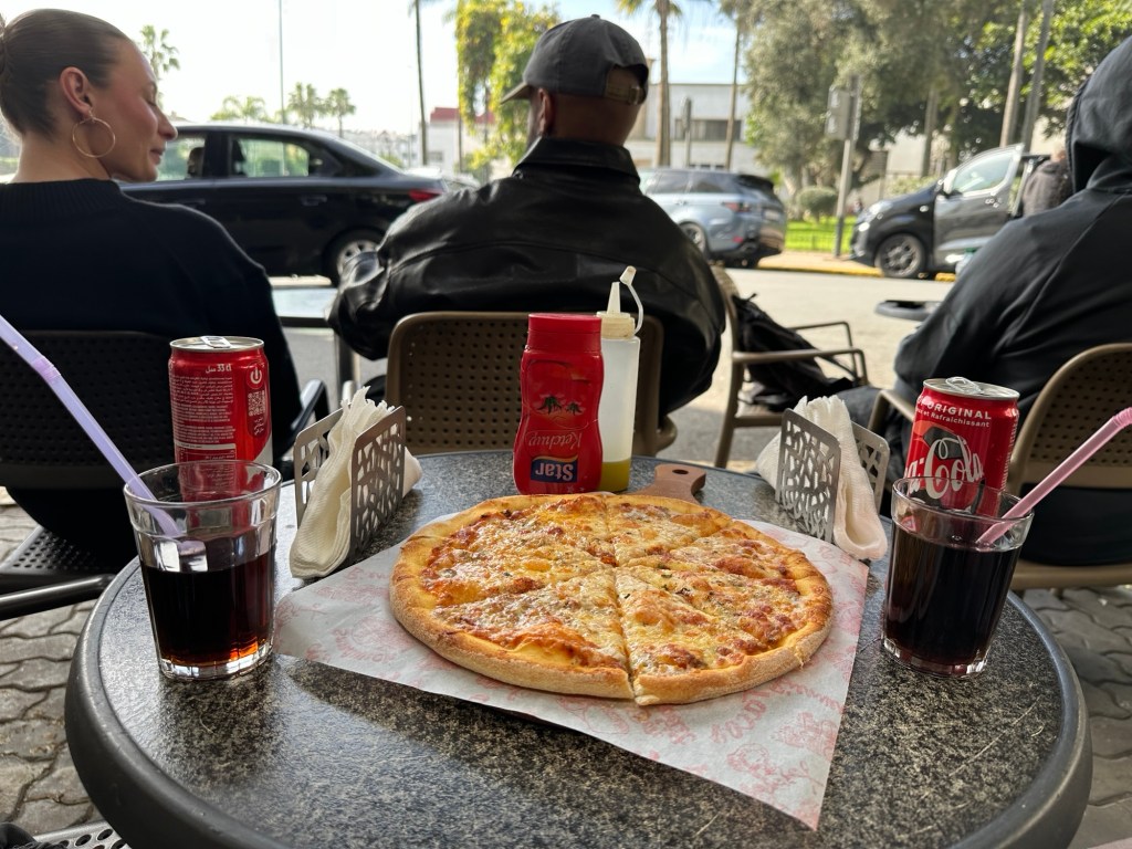 We are hungry though so we turn back around to get a snack at a cafe on the other side of the Medina. The pizza isn’t the best but it is nice to rest after walking all day. We people watch for while.