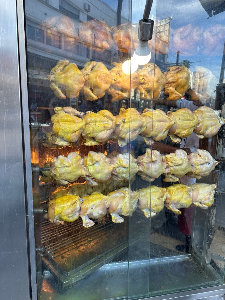 We also walk by a district full of the smell of grilled meats, the aroma of rotisserie chicken fills the street air.